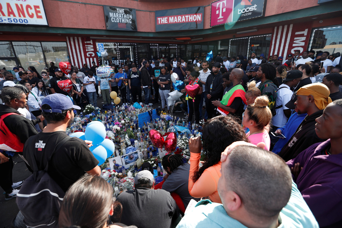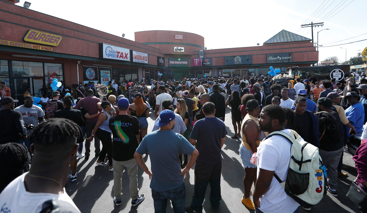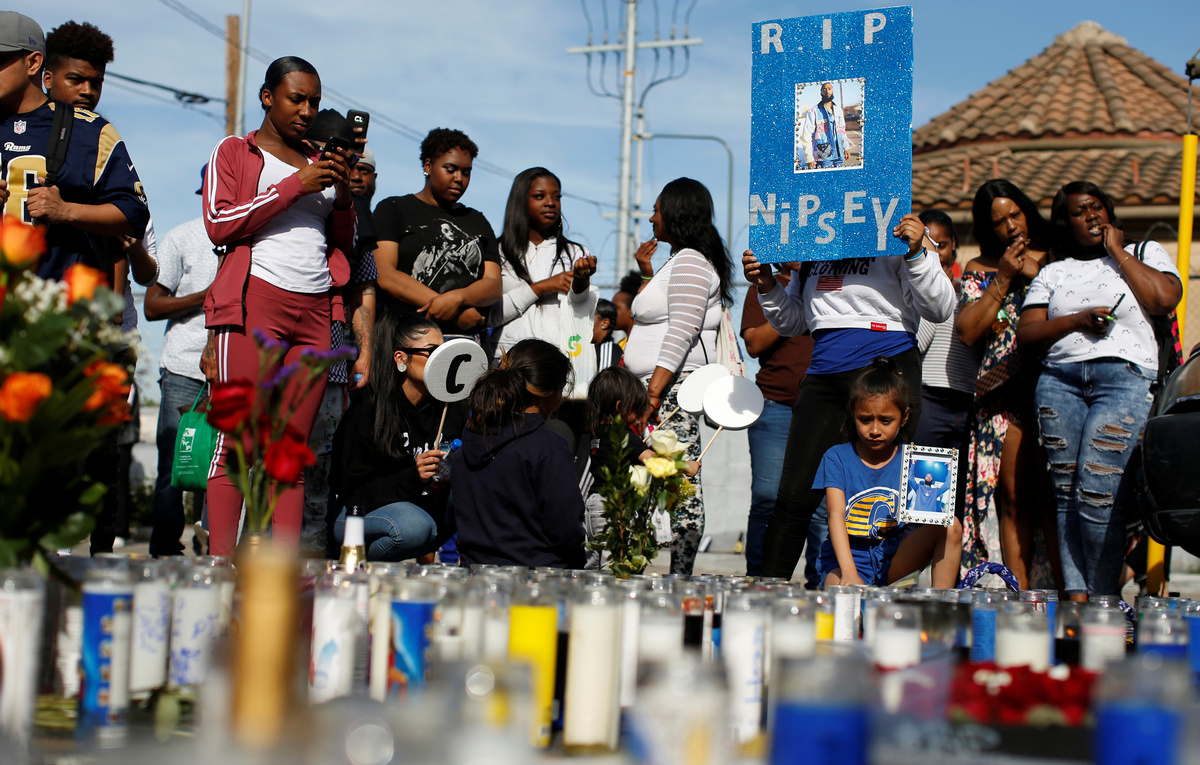 Hussle, 33, whose real name was Ermias Asghedom, was shot multiple times on Sunday afternoon outside his store, Marathon Clothing, in south Los Angeles. Two other people were wounded in the shooting, police said.