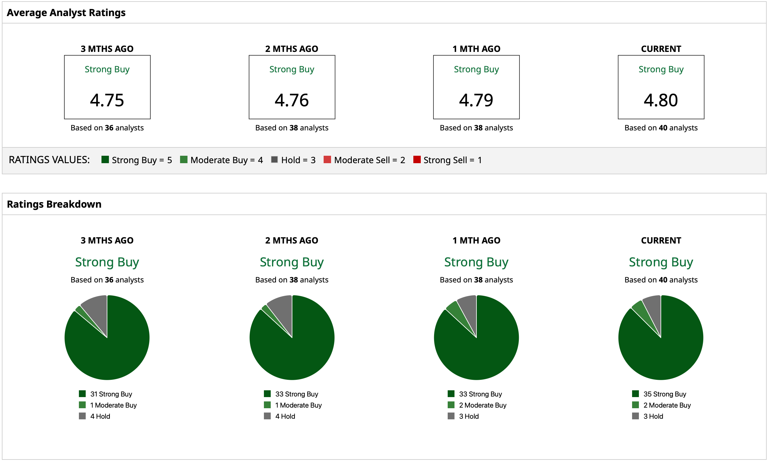 Analysts have deemed AVGO stock a consensus “Strong Buy,” with a mean target price of $371.90. This denotes an upside potential of about 11.6% from current levels. Out of 40 analysts covering the stock, 35 have a “Strong Buy” rating, two have a “Moderate Buy” rating, and three have a “Hold” rating.
