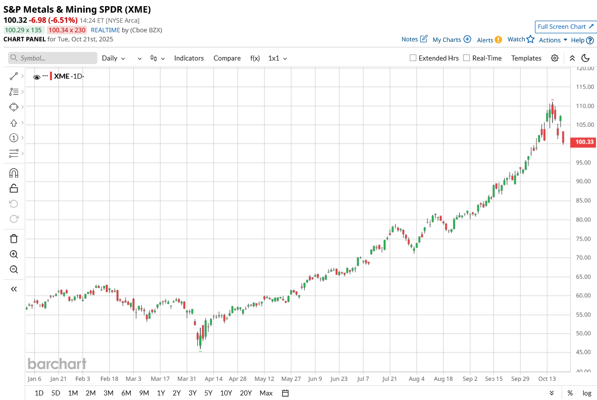 Up more than 75% this year, XME is outpacing both the S&P 500 ($SPX) upside of 14% in the same period and even the Magnificent 7 tech giants, which Goldman Sachs’ Tony Pasquariello says now “look like Treasurys” by comparison. Where digital wealth once dominated, hard assets are reclaiming their place in the spotlight. Could XME be the truest expression of America’s next bull run, one rooted in real assets rather than digital code? Let’s dive into this ETF.