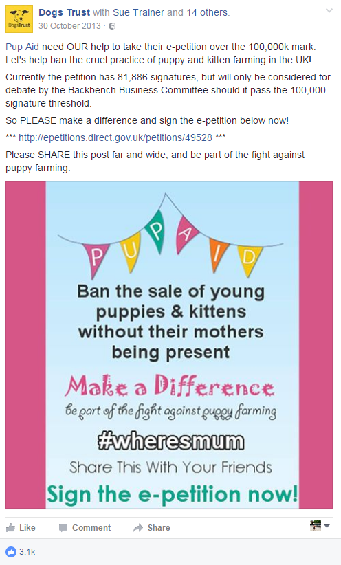 “We agreed with the principles behind the 2014 petition, which only addressed the sale of puppies and kittens without their mother, but we have always had concerns on how this would be enforced.”
