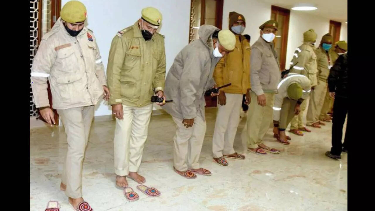 Commissioner of police A Satish Ganesh and divisional commissioner Deepak Agrawal distributed the jute footwear gifted by the PM among the security staff, priests and sanitary workers on Sunday as well as Monday.