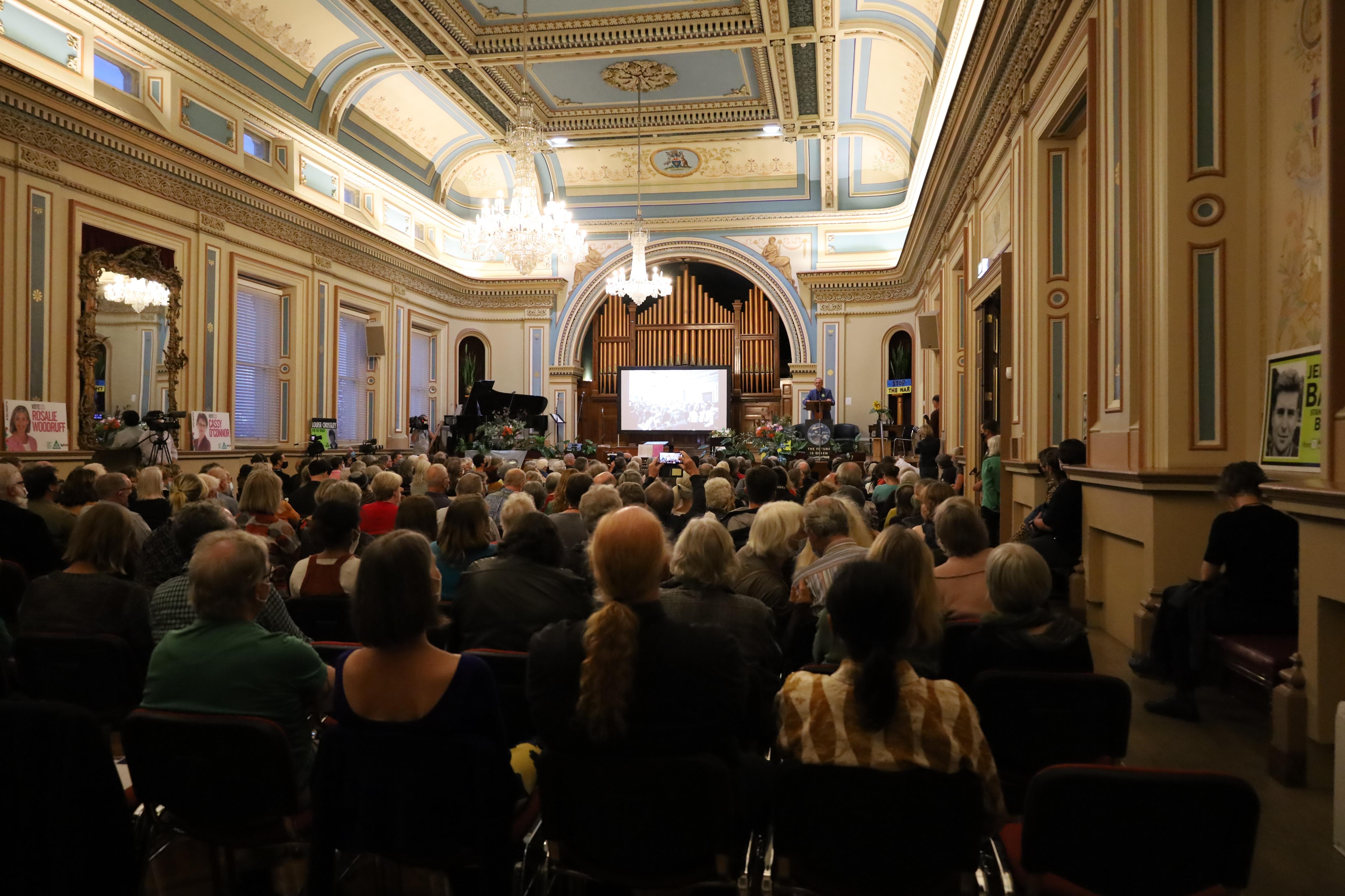 "I'm really very excited to be here at the Hobart Town Hall where it all began," former Tasmanian and Australian Greens leader Christine Milne said on Saturday night at a celebration of 50 years of green politics.