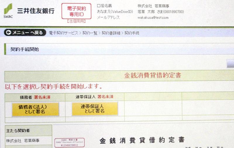 Sumitomo Mitsui Banking Corp. saw the number of loan contracts signed electronically reach about 2,000 in April this year. The electronic service was introduced in 2016, but the number of such contracts stood at about 1,000 in April 2019. The figure doubled over the past year. People, such as corporate teleworkers in charge of financial transactions, appear to have increasingly used the system amid the pandemic.