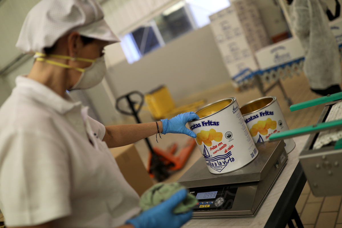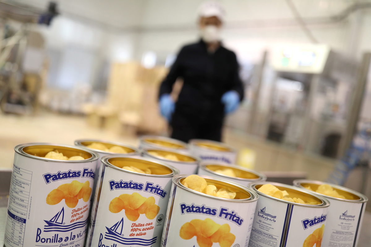 Cans of potatoes are pictured inside Bonilla a la Vista factory in Arteixo, near Coruna, Spain February 18, 2020. REUTERS/Nacho Doce