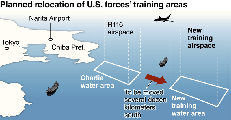 Under the envisaged adjustment, the training area will be moved several dozen kilometers to the south from its current location to minimize the impact on flights using Narita Airport.