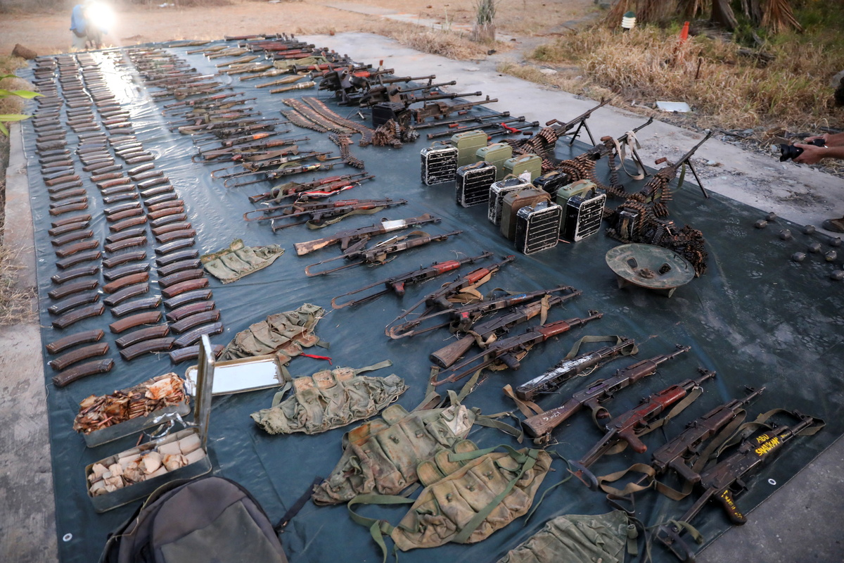 Soldiers laid out rifles and rocket launchers seized from the militants. The Rwandan military's spokesman said they had already brought 25,000 people back home. "It is very safe for them to go back," Ronald Rwivanga told Reuters.