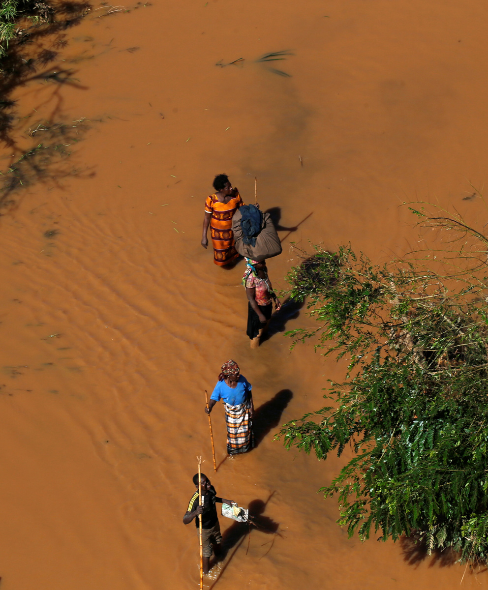 The WFP stepped up airdrops of high-energy biscuits and water purification tablets to isolated pockets of people stranded by the floodwaters.