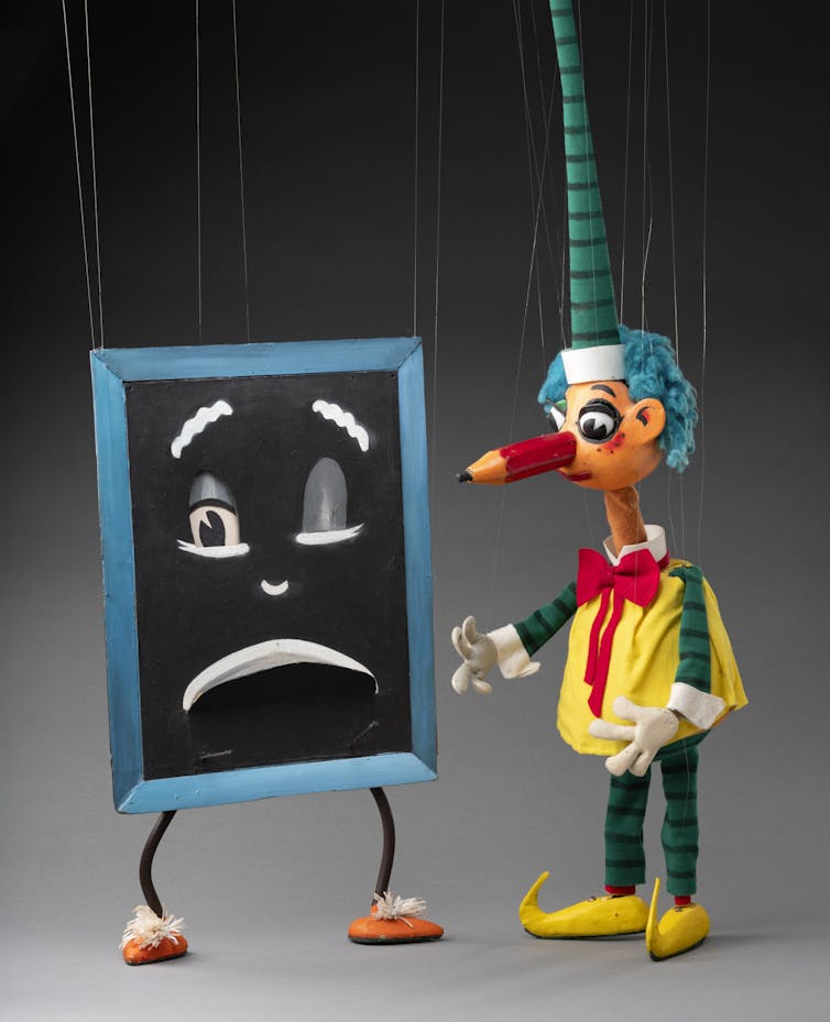 The exhibition taps directly into the nostalgia of Mr Squiggle. Curators have approached the collection with care, conserving and retouching items and using custom supports and lighting to preserve fragile puppets.