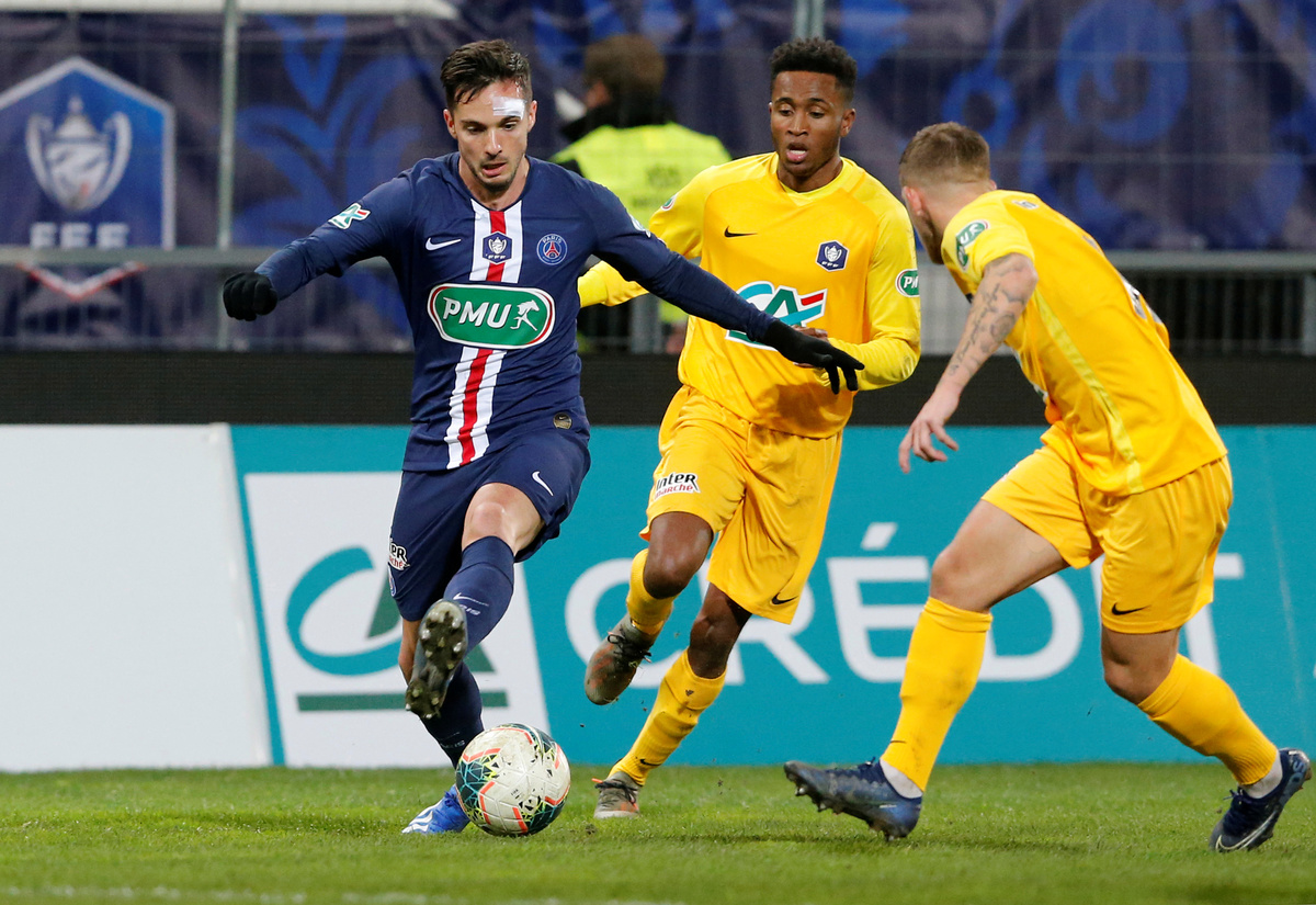 Goals from Leandro Paredes and Pablo Sarabia either side of halftime were enough to earn the champions victory over their hosts, who caused a big upset in the previous round by knocking out top-flight Bordeaux.