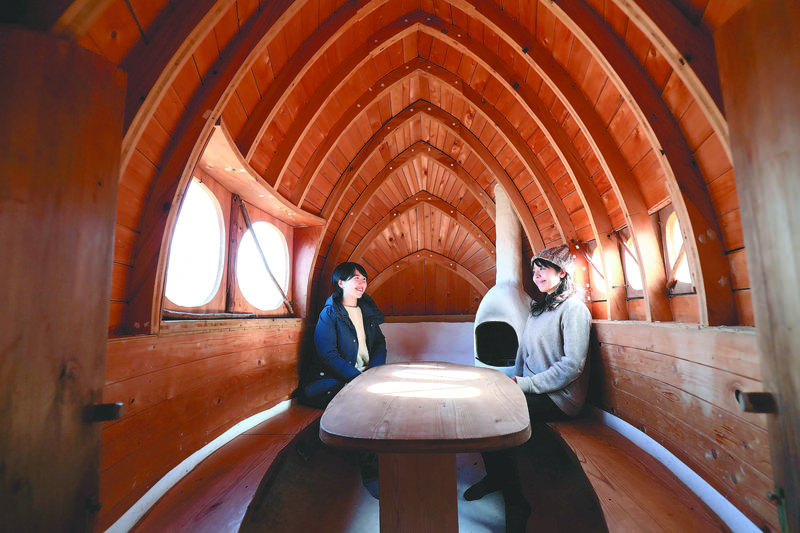 Near the mud boat and the museum, there are two tea rooms created by Fujimori: one is called "Takasugi-an," which hangs 6 meters off the ground and looks like a secret base for kids, and the other is "Hikusugi-an," which is half-buried in the ground.