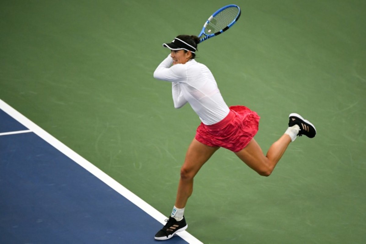 Spain's Garbine Muguruza looked determined to overcome her U.S. Open jinx on Tuesday, overcoming a sluggish start to collect a snappy 6-4 6-4 first round win over Japan's Nao Hibino.