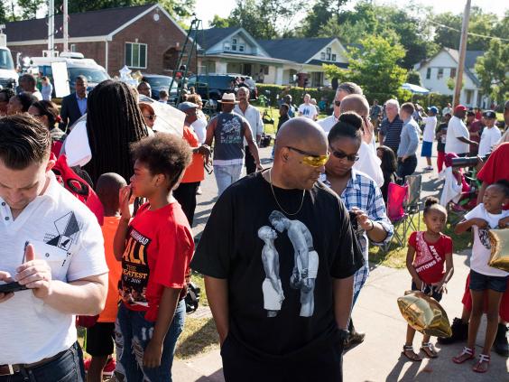 On the streets outside the crowds were even greater, lined in their tens of thousands along the 19-mile route of the funeral procession, as the hearse, passed his childhood home and through the neighbourhoods where he was just a kid named Cassius Clay. “Al-i, Al-i,” they chanted.