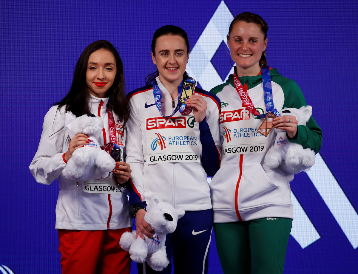 GLASGOW (Reuters) - Britain's Laura Muir won the women's 1500 metres to complete a European Indoor Athletics Championships double on Sunday but Norwegian teenager Jakob Ingebrigtsen missed out in the men's event, beaten by Marcin Lewandowski.