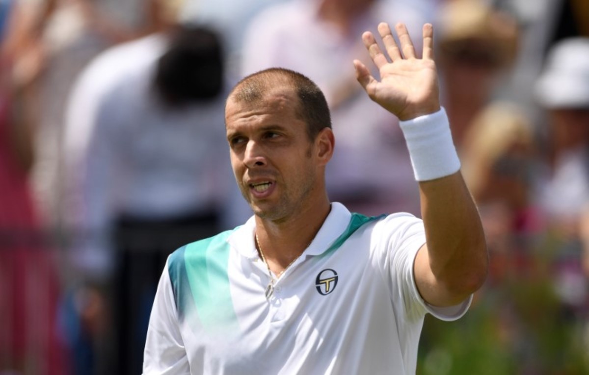 The late-blooming 34-year-old chalked up a seventh successive victory on the green stuff as he beat the powerful American 6-4 7-6(5) to reach the semi-finals.