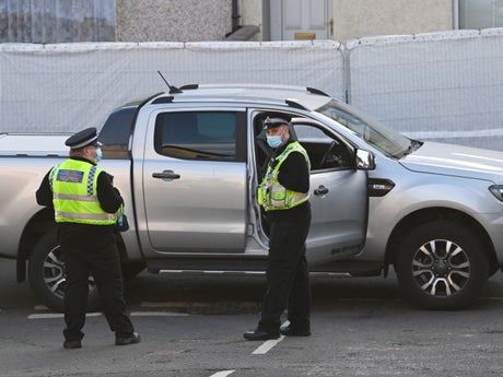 The street was closed off with police tape, and footage showed many police cars parked in the street beyond the cordons.