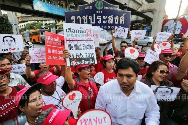 Protests were held in Bangkok and several up-country provinces on Sunday to demand an end to delays in the general election, which was last promised for Feb 24 but now is in limbo.