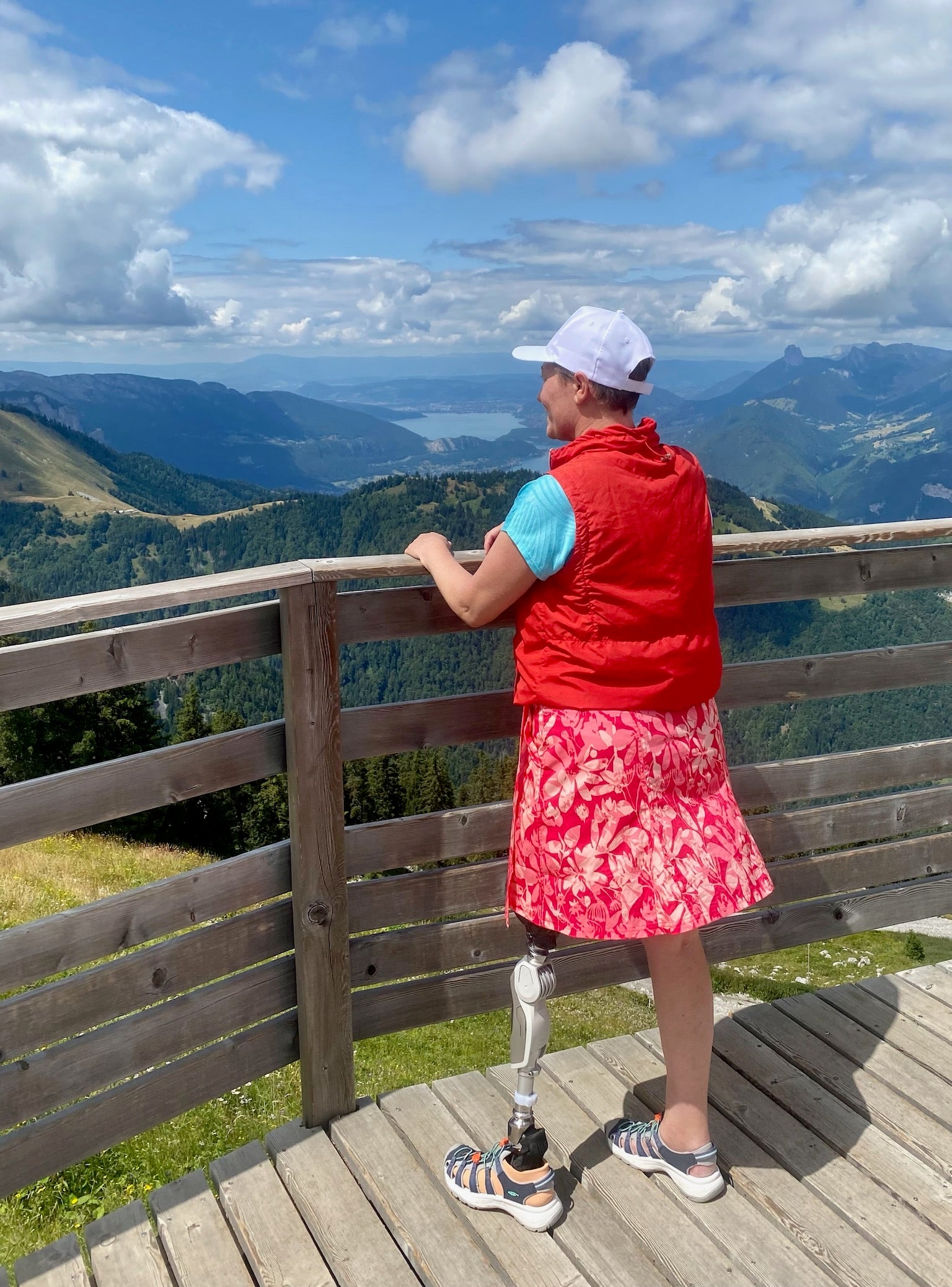 However, she cannot cycle or ski and “wants to integrate back into an active lifestyle” and is fundraising for a prosthetic sports knee to make this possible.