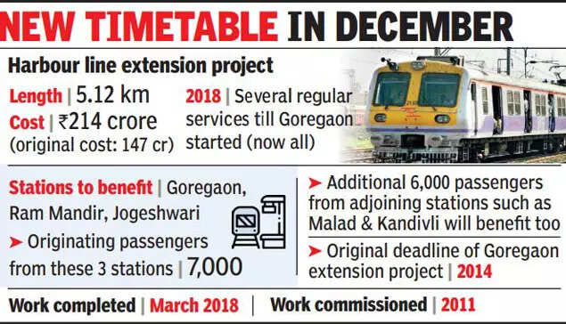 A senior official said, “We are working on a new timetable, according to which the existing 22 pairs of services that run between CSMT and Andheri will be extended till Goregaon from December. Similarly, 9 more pairs of services that run between Panvel and Andheri will be extended as well.”