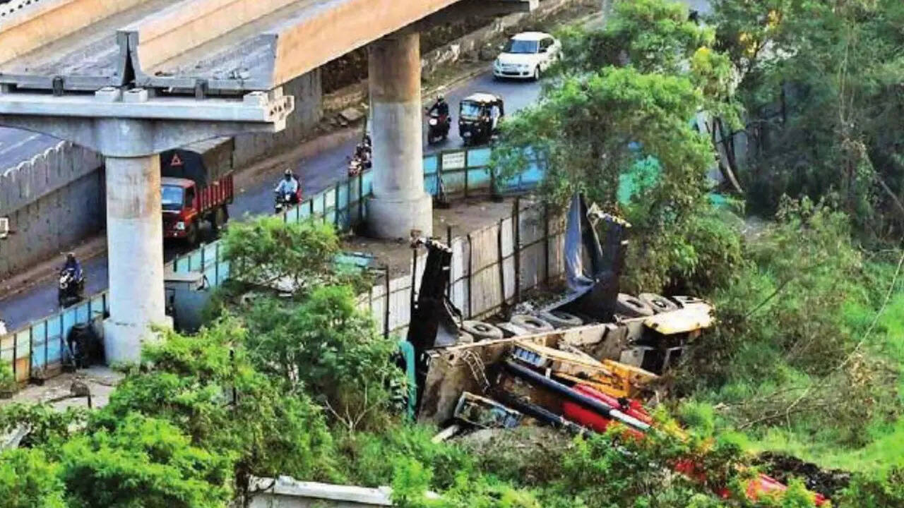 MUMBAI: A crane operator died after the 500-tonne capacity vehicle tilted over and collapsed at Kanjurmarg on Jogeshwari-Vikhroli Link Road while a girder of the Metro rail line was being installed around 6.30am on Sunday.
