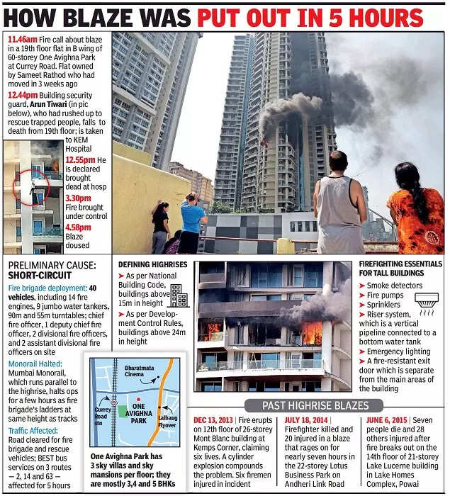 MUMBAI: After a major fire broke out at One Avighna Park near Currey Road bridge, panic-stricken residents of the B wing rushed down from their homes and gathered on the ground floor as smoke started spreading. Pointing out that the sprinkler system did not start after the alarm, they claimed the builder has not handed over maintenance of the building to the housing society. The A wing was unaffected.