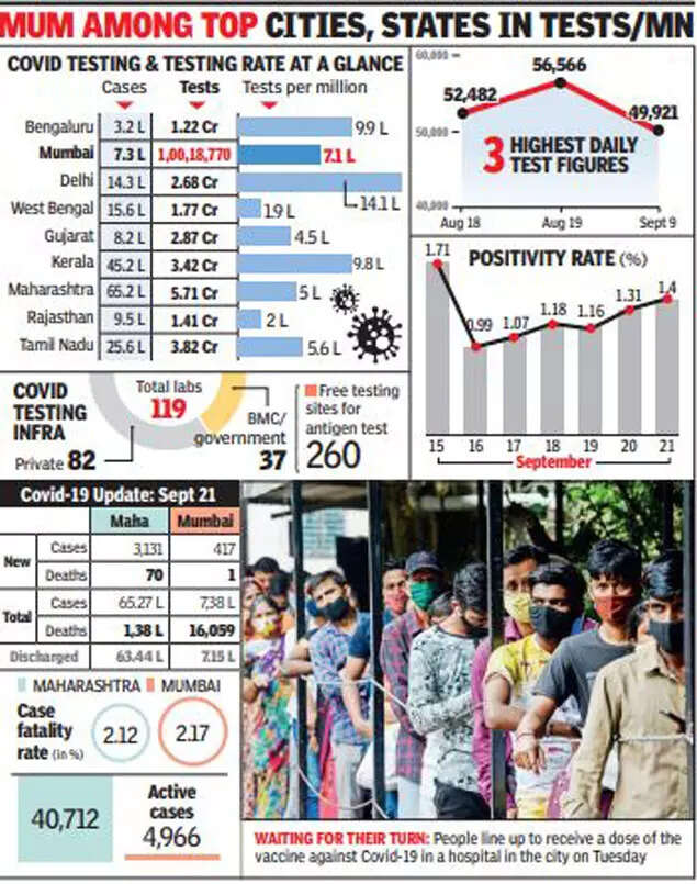 MUMBAI: Mumbai on Tuesday completed one crore tests to detect the novel Coronavirus, achieving one of the best testing rates for a city in India.