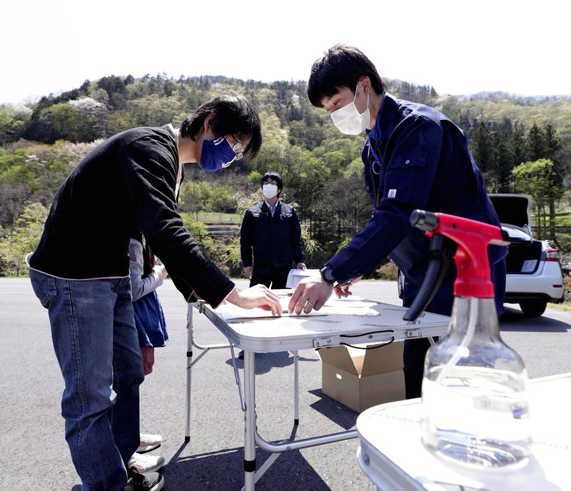 In the village of Ueno, Gunma Prefecture, with a population of about 1,100, staff members of the village government lined up desks at a local heliport Wednesday afternoon, handing out merchandise coupons to village residents who showed up. The heliport was one of 30 outdoor locations where the village office distributed the coupons, as a measure against the so-called three Cs: closed spaces with poor ventilation, crowded places with many people nearby, and close-contact settings.