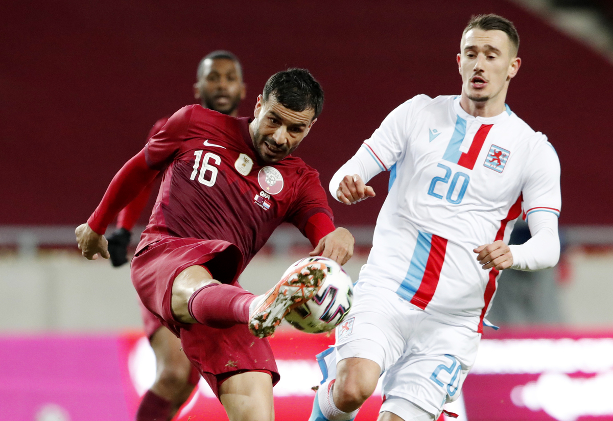 Soccer Football - International Friendly - Qatar v Luxembourg - Nagyerdei Stadion, Debrecen, Hungary - March 24, 2021 Qatar's Boualem Khoukhi in action with Luxembourg's Edvin Muratovic REUTERS/Bernadett SzaboSoccer Football - International Friendly - Qatar v Luxembourg - Nagyerdei Stadion, Debrecen, Hungary - March 24, 2021 Luxembourg's Maxime Chanot in action with Qatar's Almoez Ali REUTERS/Bernadett Szabo