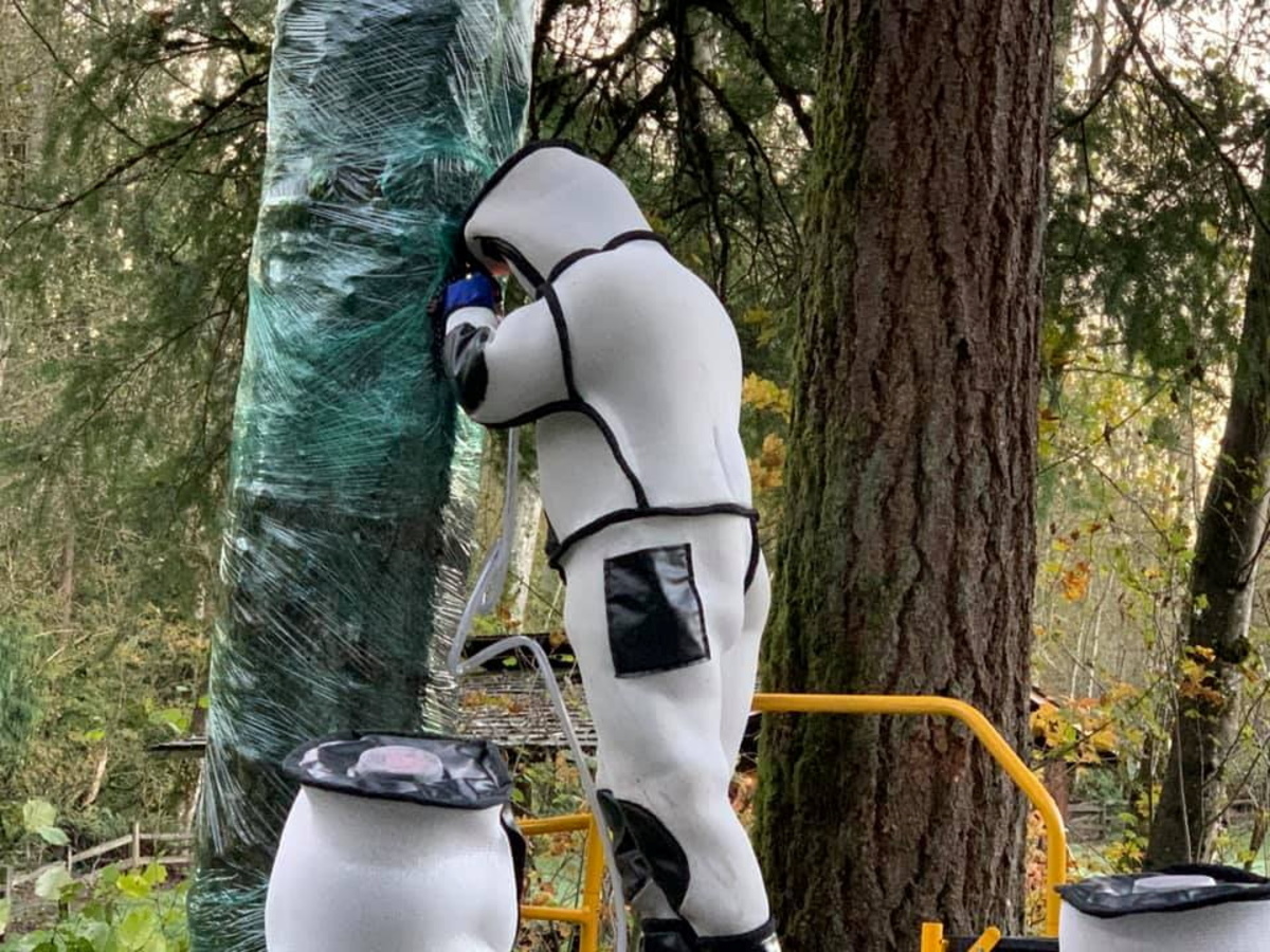 The state's entomologists succeeded by attaching radio trackers to three hornets they had trapped earlier in the week, one of which they followed to the nest, located in a tree near Blaine, Washington, on Thursday.