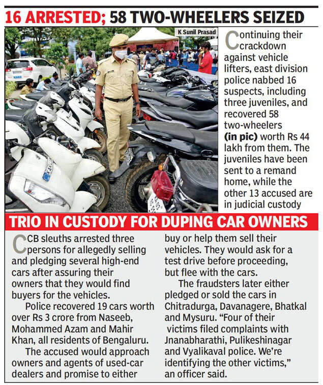 BENGALURU: An ongoing investigation into a murder case helped police crack a series of vehicle thefts reported in and around the city.