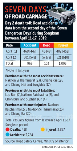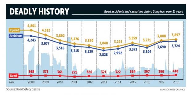 The government has for many years spearheaded a road safety campaign to curb the high number of casualties during the New Year and Songkran festivals but with little success.