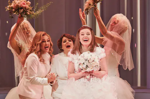 Muriel Heslop occupies a precious position in Australian cultural life. She is, perhaps, our most-loved dag. The creative team that has transformed her story into a musical have produced a deeply satisfying night at the theatre. Any moment of translation carries with it the possibility of disappointment and betrayal. But the Sydney Theatre Company’s Muriel’s Wedding: the Musical makes us fall in love with this story all over again.