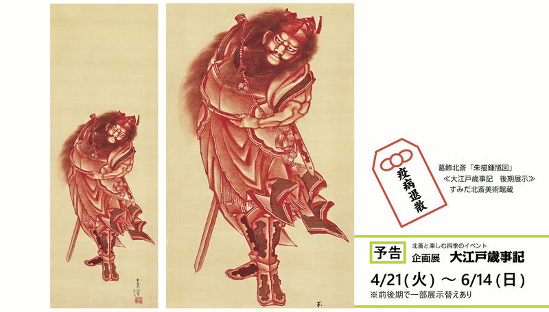 In March, the Sumida Hokusai Museum in Ryogoku, Tokyo, which has been closed since Monday, posted an image of an original red painting of Shoki, a scholar from the early seventh century in China, by Katsushika Hokusai, an ukiyo-e artist during the Edo period (1603-1867), in the hope for peace in society. Shoki was worshiped as a god to ward off evil, especially epidemics, in ancient China. He has been painted in Japan for hundreds of years to ward off smallpox.