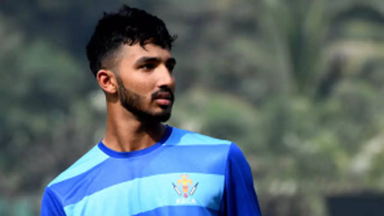 On a slow surface, Karnataka made one change from their previous match against Services, bringing in pacer Prasidh Krishna for MB Darshan. Left-arm spinner J Suchith was pressed into action in the third over and the move paid off immediately with Kedar Devdhar handing a catch to Vyshak Vijaykumar.