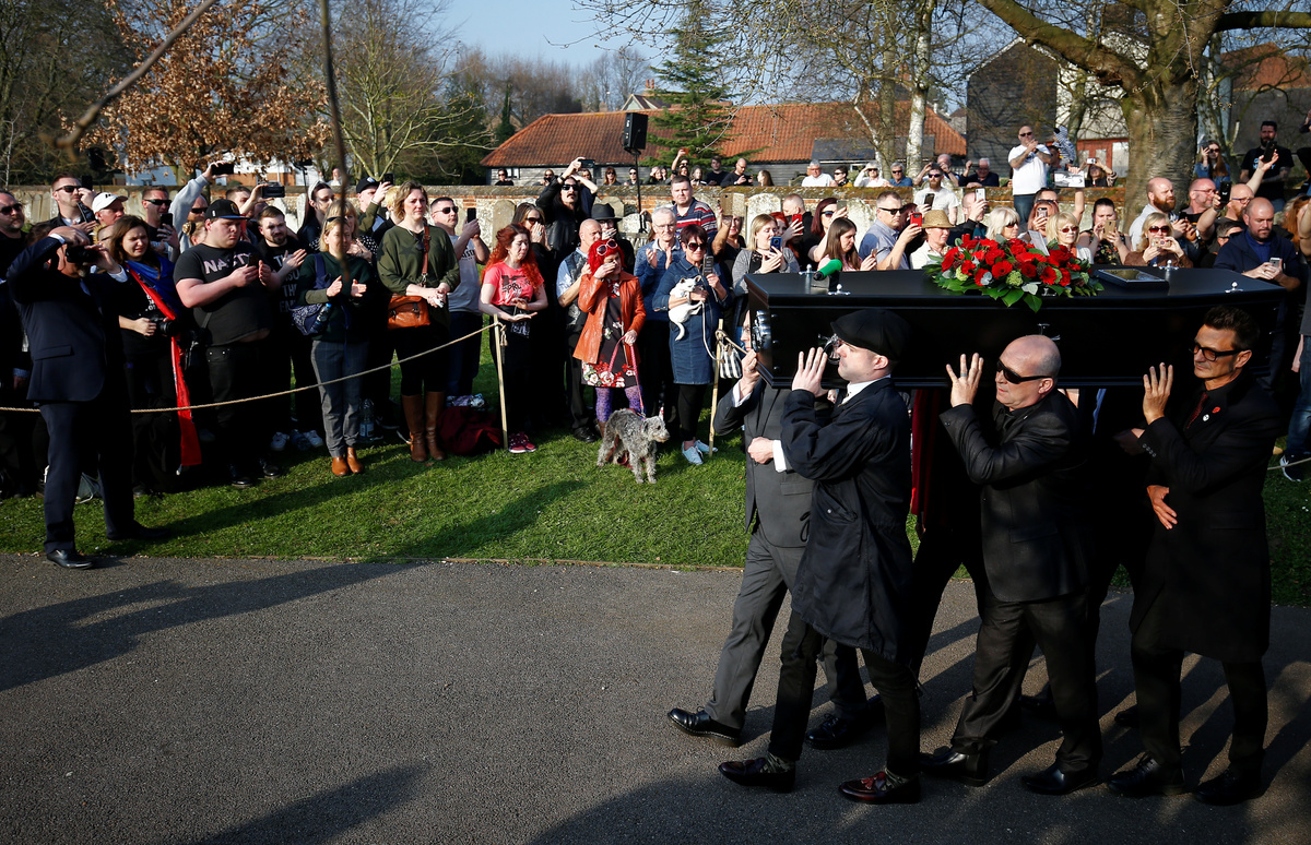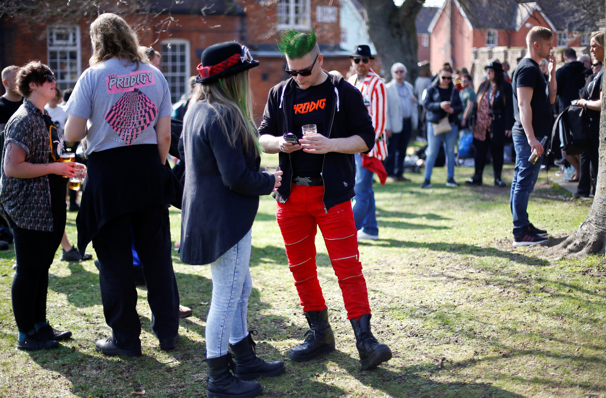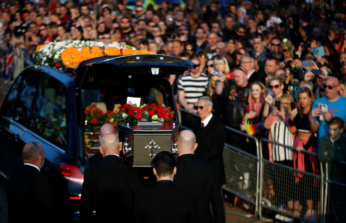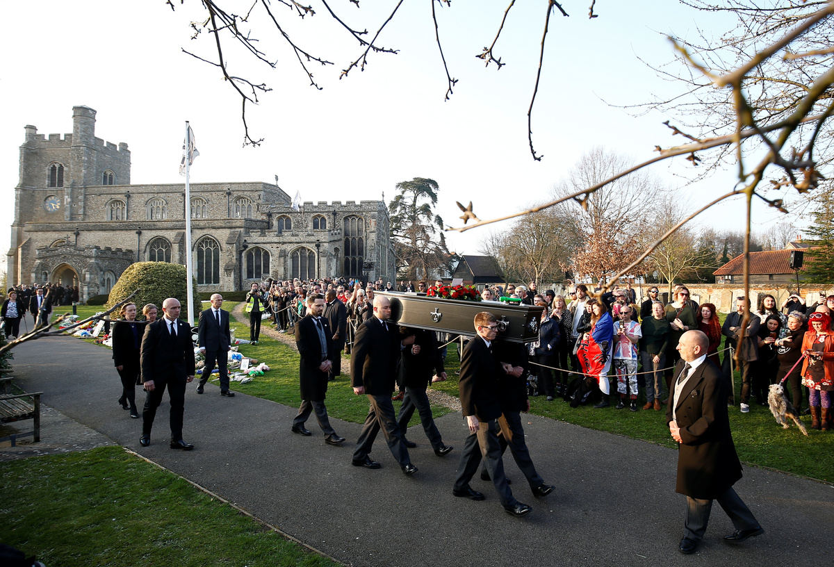 A coffin of British singer Keith Flint of techno group The Prodigy is carried during his funeral in Braintree, Essex, Britain, March 29, 2019. REUTERS/Henry NichollsA coffin of British singer Keith Flint of techno group The Prodigy is carried during his funeral in Essex, Britain, March 29, 2019. REUTERS/Henry NichollsFans gather for British singer Keith Flint of techno group The Prodigy funeral in Braintree, Essex, Britain, March 29, 2019. REUTERS/Henry NichollsFans gather for British singer Keith Flint of techno group The Prodigy funeral in Braintree, Essex, Britain, March 29, 2019. REUTERS/Henry NichollsFans gather for British singer Keith Flint of techno group The Prodigy funeral in Braintree, Essex, Britain, March 29, 2019. REUTERS/Henry NichollsFans gather for British singer Keith Flint of techno group The Prodigy funeral in Braintree, Essex, Britain, March 29, 2019. REUTERS/Henry NichollsFans gather for British singer Keith Flint of techno group The Prodigy funeral in Braintree, Essex, Britain, March 29, 2019. REUTERS/Henry NichollsA woman reacts as fans gather for British singer Keith Flint of techno group The Prodigy funeral in Braintree, Essex, Britain, March 29, 2019. REUTERS/Henry NichollsFans gather for British singer Keith Flint of techno group The Prodigy funeral in Braintree, Essex, Britain, March 29, 2019. REUTERS/Henry NichollsFans gather for British singer Keith Flint of techno group The Prodigy funeral in Braintree, Essex, Britain, March 29, 2019. REUTERS/Henry NichollsFans gather for British singer Keith Flint of techno group The Prodigy funeral in Braintree, Essex, Britain, March 29, 2019. REUTERS/Henry NichollsFans gather for British singer Keith Flint of techno group The Prodigy funeral in Braintree, Essex, Britain, March 29, 2019. REUTERS/Henry NichollsA fan is seen before British singer Keith Flint of techno group The Prodigy funeral in Braintree, Essex, Britain, March 29, 2019. REUTERS/Henry NichollsFans celebrate the life of British singer Keith Flint of techno group The Prodigy after his funeral in Braintree, Essex, Britain, March 29, 2019. REUTERS/Henry NichollsA fan pours a drink at a celebration of the life of British singer Keith Flint of techno group The Prodigy after his funeral in Braintree, Essex, Britain, March 29, 2019. REUTERS/Henry Nicholls