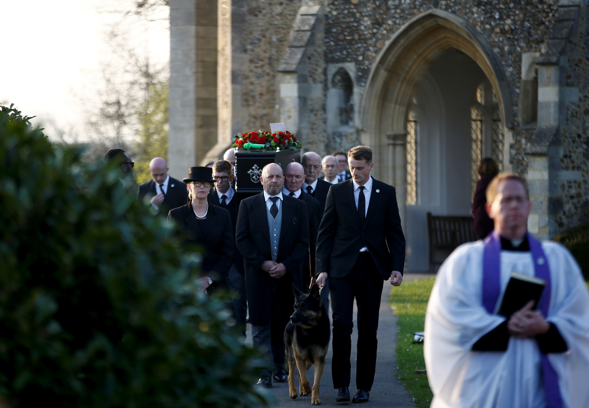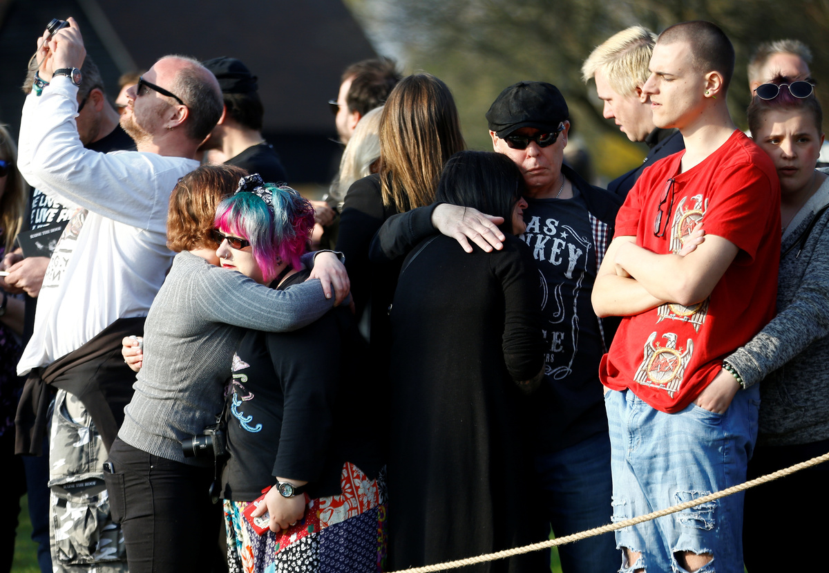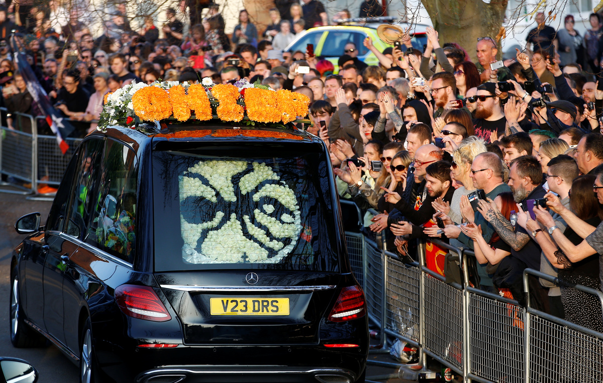 A coffin of British singer Keith Flint of techno group The Prodigy is carried during his funeral in Braintree, Essex, Britain, March 29, 2019. REUTERS/Henry NichollsA coffin of British singer Keith Flint of techno group The Prodigy is carried during his funeral in Essex, Britain, March 29, 2019. REUTERS/Henry NichollsFans gather for British singer Keith Flint of techno group The Prodigy funeral in Braintree, Essex, Britain, March 29, 2019. REUTERS/Henry NichollsFans gather for British singer Keith Flint of techno group The Prodigy funeral in Braintree, Essex, Britain, March 29, 2019. REUTERS/Henry NichollsFans gather for British singer Keith Flint of techno group The Prodigy funeral in Braintree, Essex, Britain, March 29, 2019. REUTERS/Henry NichollsFans gather for British singer Keith Flint of techno group The Prodigy funeral in Braintree, Essex, Britain, March 29, 2019. REUTERS/Henry NichollsFans gather for British singer Keith Flint of techno group The Prodigy funeral in Braintree, Essex, Britain, March 29, 2019. REUTERS/Henry NichollsA woman reacts as fans gather for British singer Keith Flint of techno group The Prodigy funeral in Braintree, Essex, Britain, March 29, 2019. REUTERS/Henry NichollsFans gather for British singer Keith Flint of techno group The Prodigy funeral in Braintree, Essex, Britain, March 29, 2019. REUTERS/Henry NichollsFans gather for British singer Keith Flint of techno group The Prodigy funeral in Braintree, Essex, Britain, March 29, 2019. REUTERS/Henry NichollsFans gather for British singer Keith Flint of techno group The Prodigy funeral in Braintree, Essex, Britain, March 29, 2019. REUTERS/Henry NichollsFans gather for British singer Keith Flint of techno group The Prodigy funeral in Braintree, Essex, Britain, March 29, 2019. REUTERS/Henry NichollsA fan is seen before British singer Keith Flint of techno group The Prodigy funeral in Braintree, Essex, Britain, March 29, 2019. REUTERS/Henry NichollsFans celebrate the life of British singer Keith Flint of techno group The Prodigy after his funeral in Braintree, Essex, Britain, March 29, 2019. REUTERS/Henry NichollsA fan pours a drink at a celebration of the life of British singer Keith Flint of techno group The Prodigy after his funeral in Braintree, Essex, Britain, March 29, 2019. REUTERS/Henry Nicholls