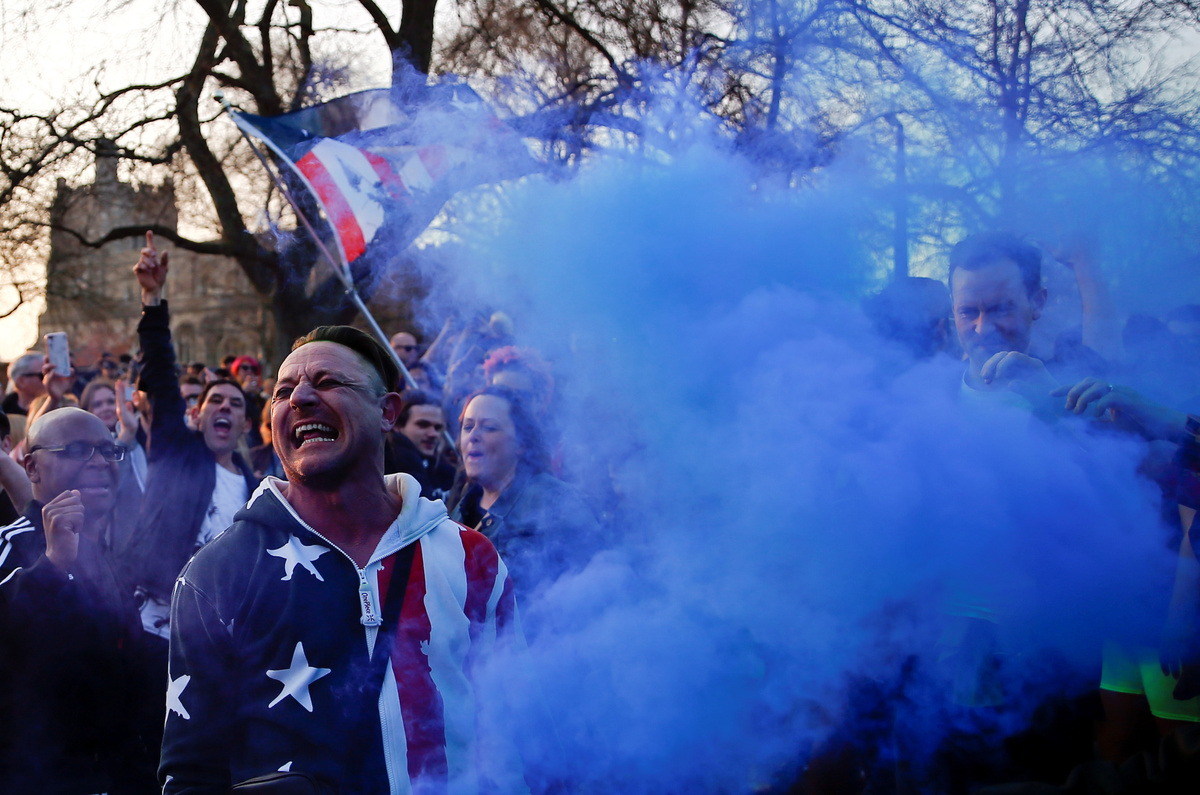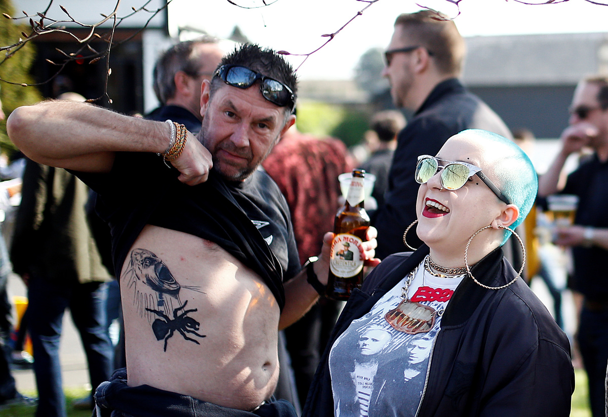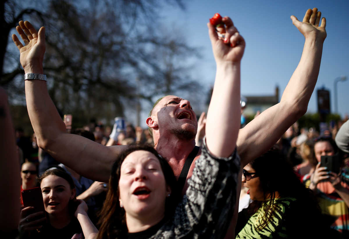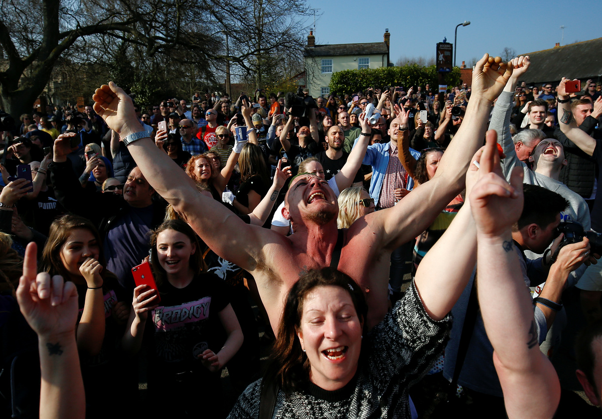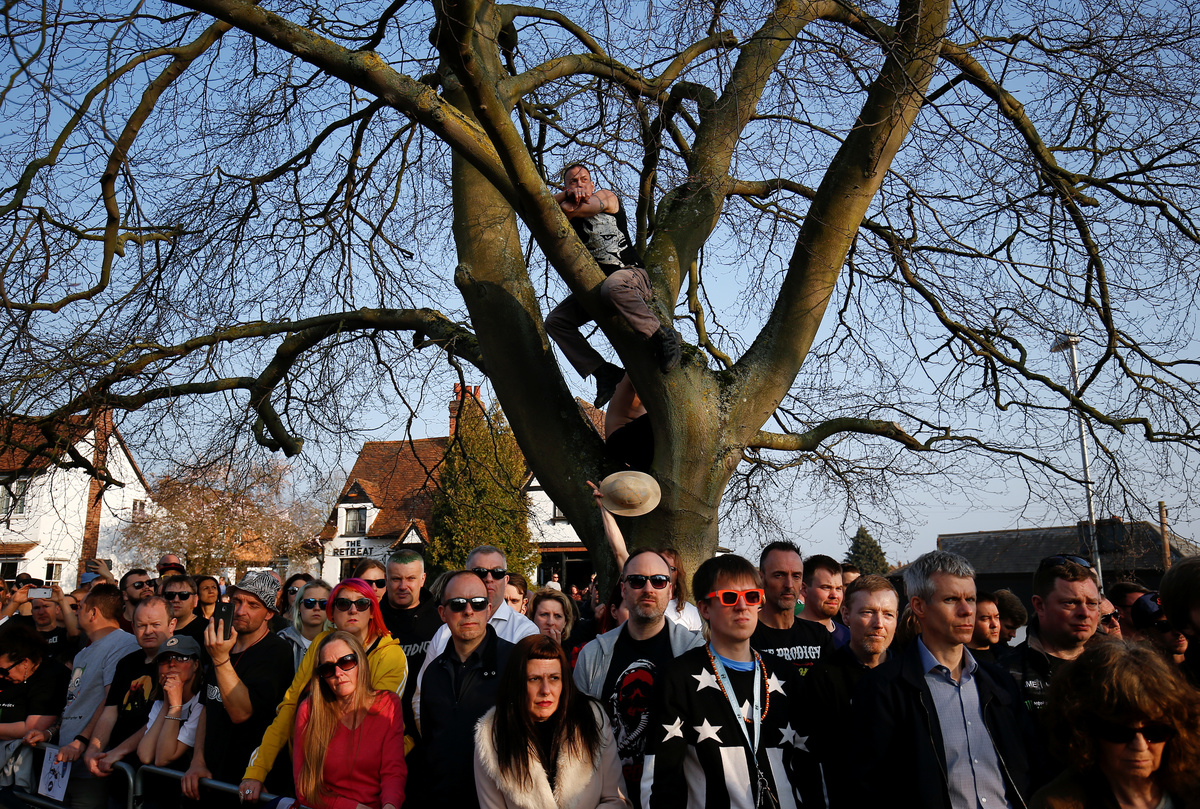 Fans gather for British singer Keith Flint of techno group The Prodigy funeral in Braintree, Essex, Britain, March 29, 2019. REUTERS/Henry Nicholls