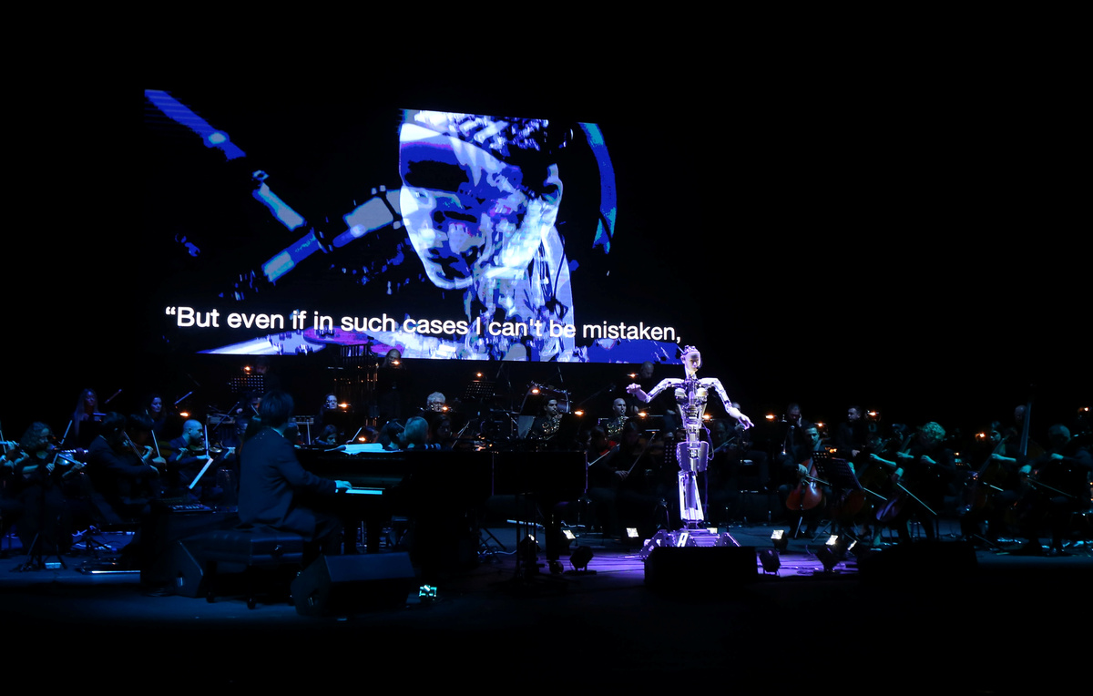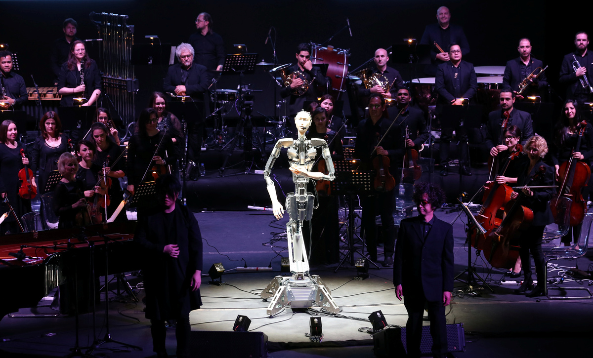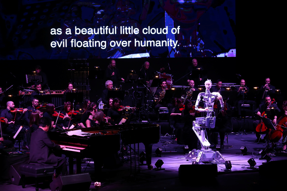 "This work is a metaphor of the relations between humans and technology. Sometimes the android will get crazy, human orchestras have to follow. But sometimes humans can cooperate very comfortably," he said.