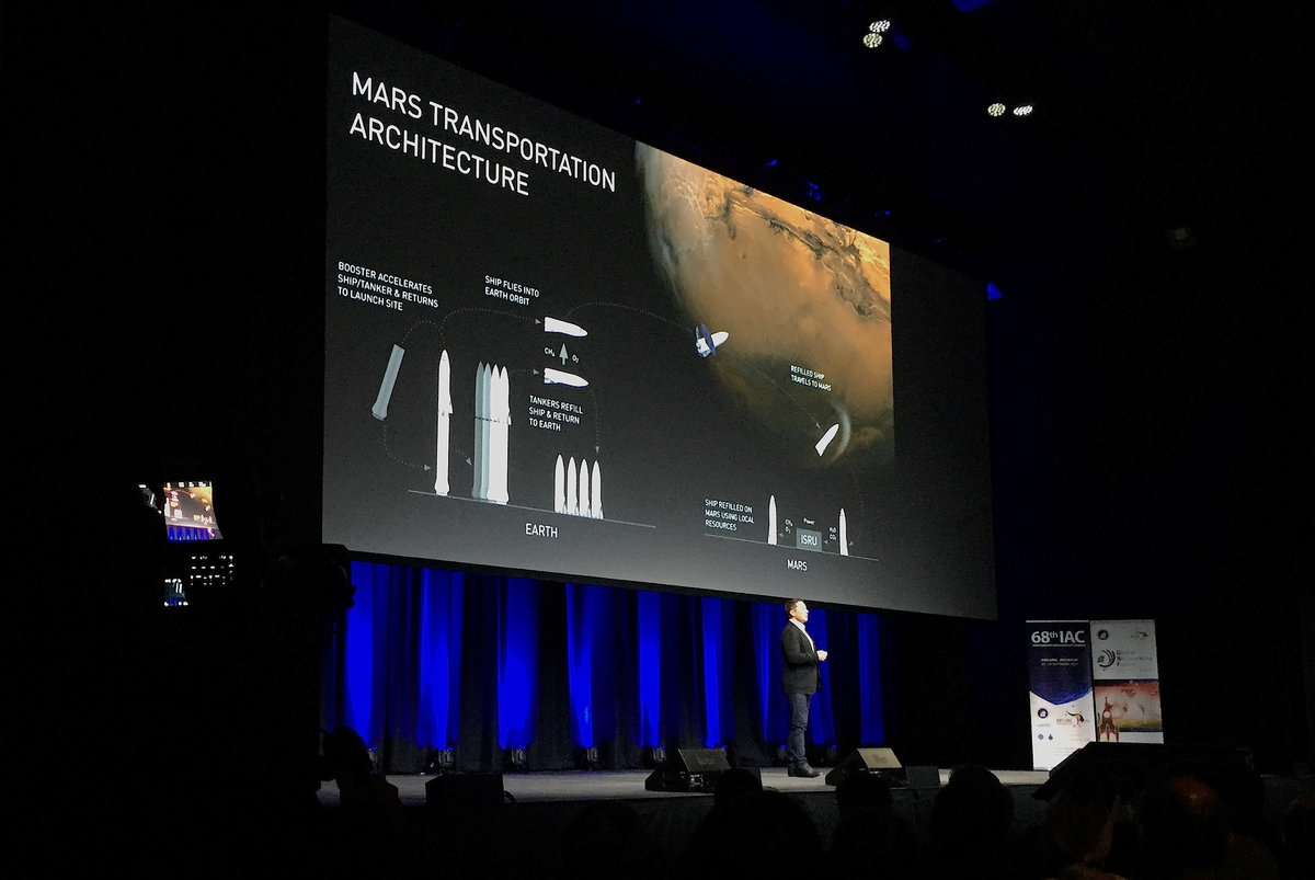 As for the intercontinental passenger rocket - a concept familiar to science fiction fans - Musk said, "If you build a ship that's capable of going to Mars, what if you take that same ship and go from one place to another on Earth? We looked at that and the results are quite interesting."