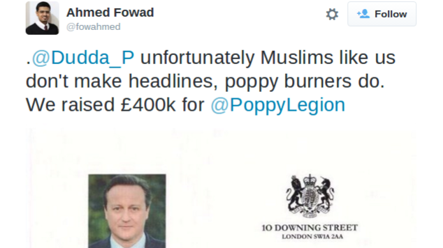 Fowad, who is a member of the Ahmadiyya Muslim Youth Association (AMYA) - a nationwide youth group that works with young Muslim men and boys around the country - stunned his followers by highlighting how “Muslims like us don't make headlines, poppy burners do.”