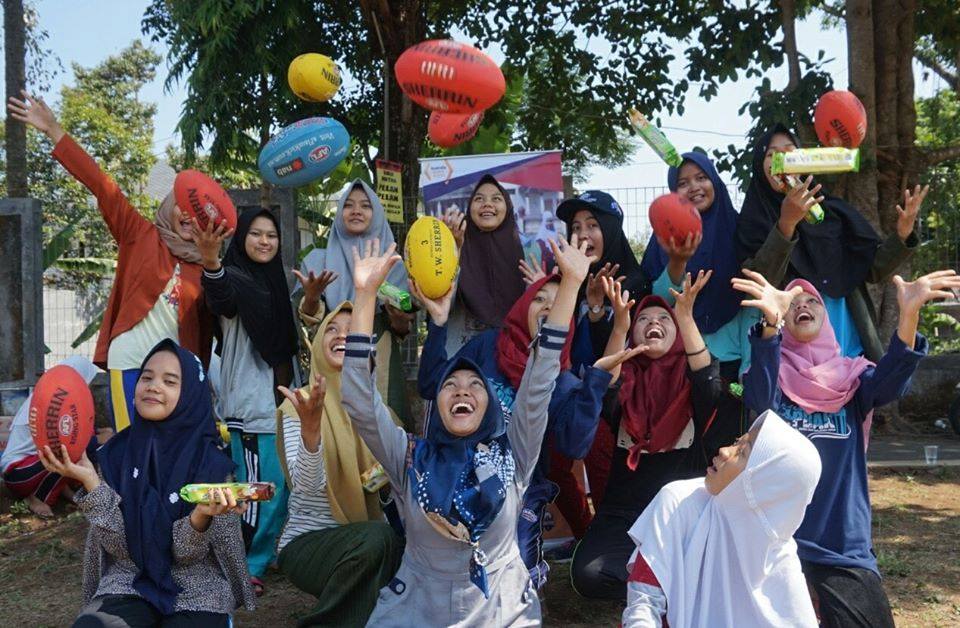The 19-year-old student is one of an increasing number of women in Indonesia picking up a footy not only to get fit but also try to understand more about Australian culture.