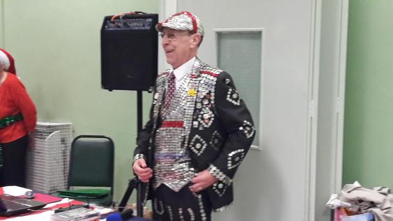 Volunteers helped out with serving the Christmas meal with turkey and all the trimmings for the 30 or so elderly people at the event while they were serenaded by two Pearly Kings from Finsbury Park, before handing out the kits.