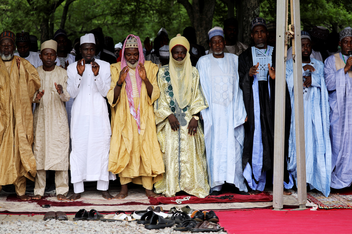 Muslims attend the morning prayers of Eid al-Fitr, marking the end of the holy month of Ramadan, in Juba, South Sudan June 4, 2019. REUTERS/Samir Bol