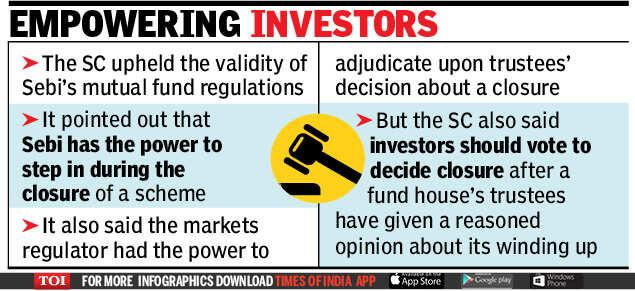 The SC also upheld the validity of Sebi’s mutual fund regulation under which these schemes are being closed down. The court held that Sebi can look into the decision of the trustees in case of a closure of a scheme.