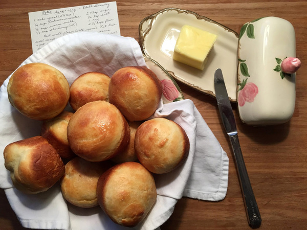 When, as a grown-up, I admired her dinner rolls _ simple, tender, always served warm with butter _ she was delighted. "They're so easy!" she said. And she wrote out the recipe on an index card, with "Rolls Good + Easy," in her perfect cursive at the top, the words underlined for emphasis.