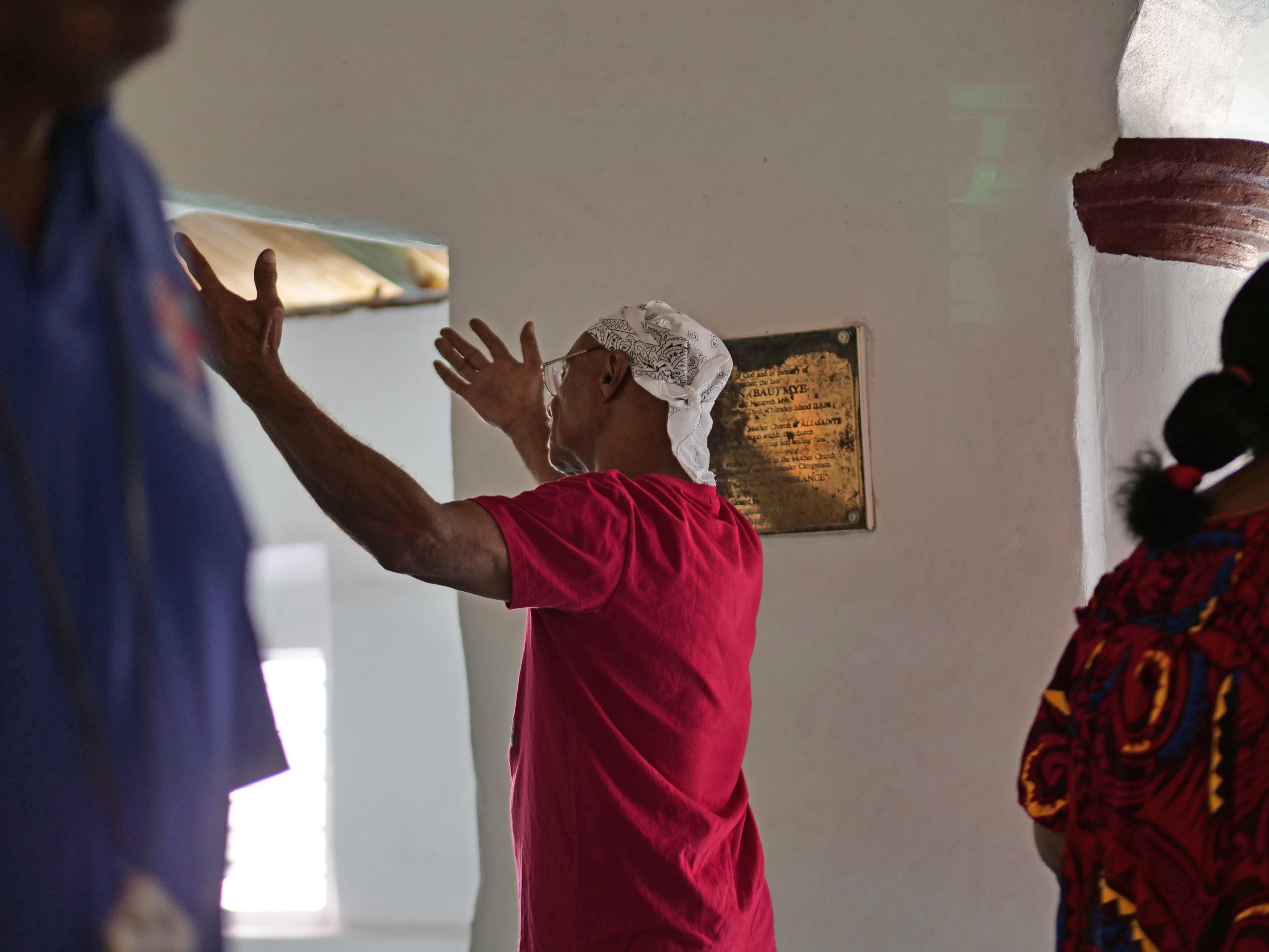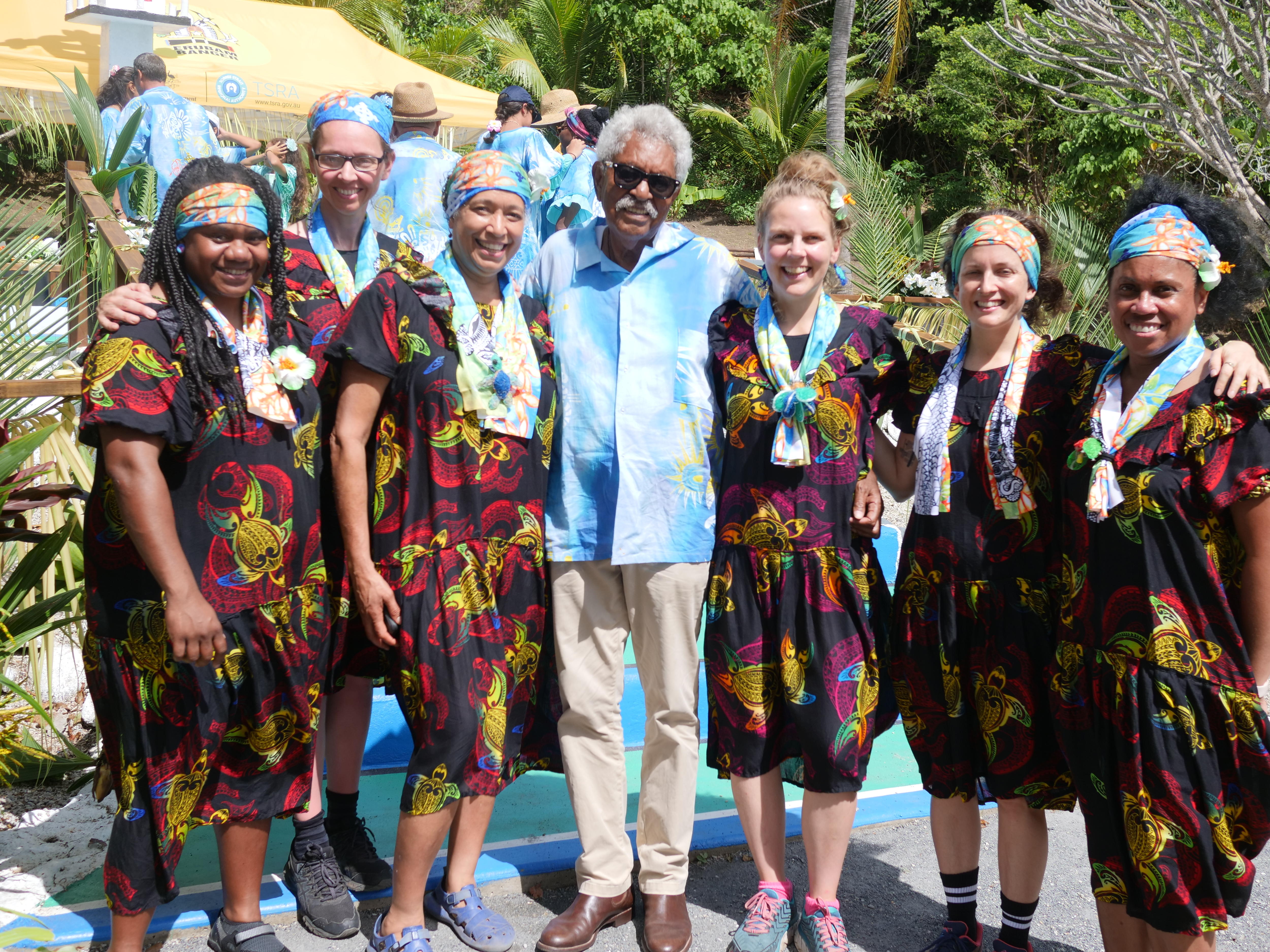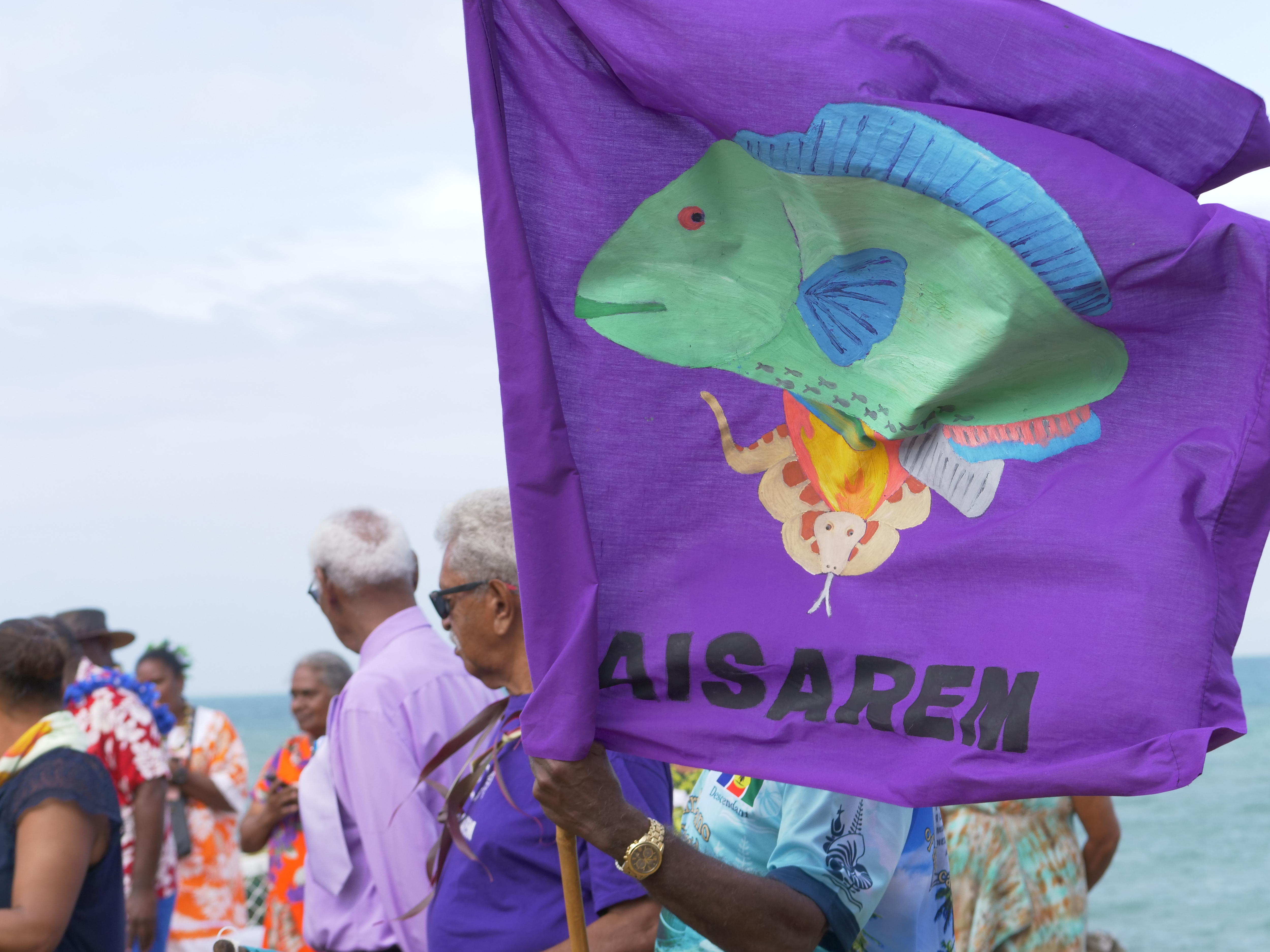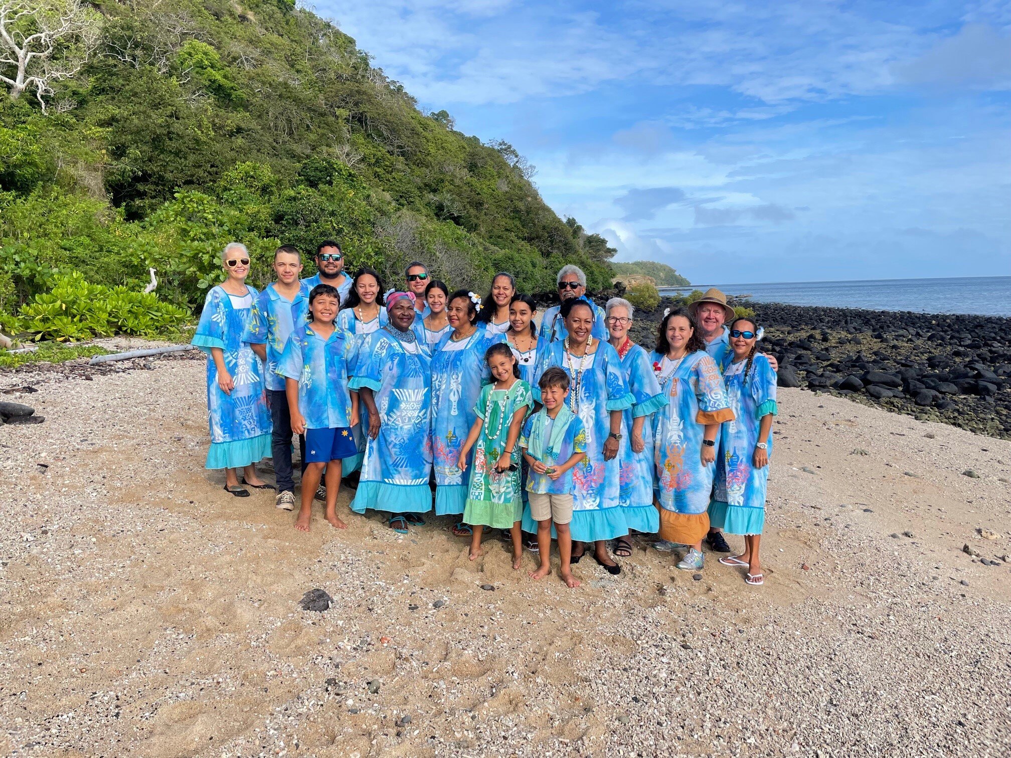Locals gather near the jetty and after a warm welcome and island songs, Pastor Moa Sailor leads the crowd through the town blessing landmarks.