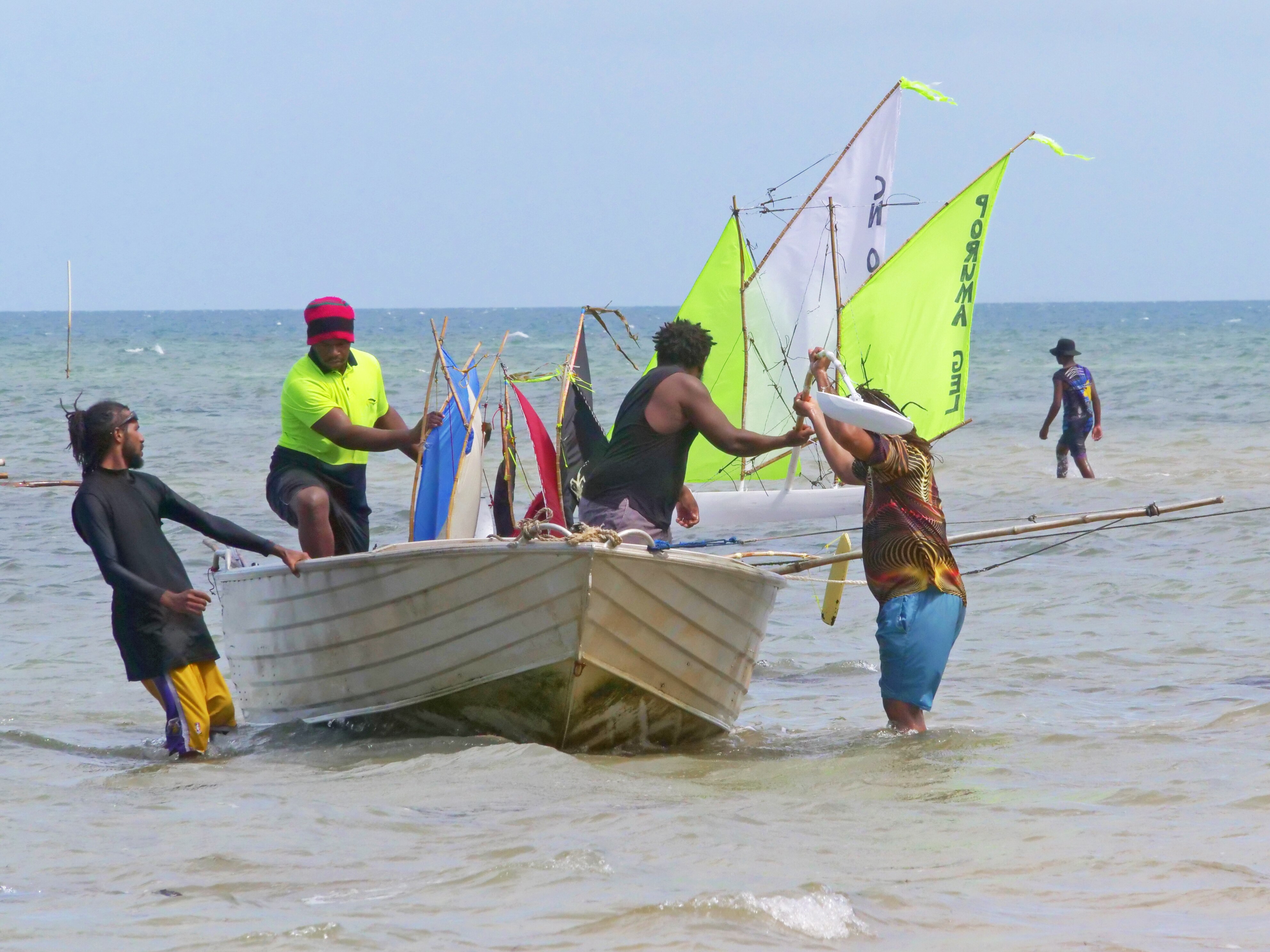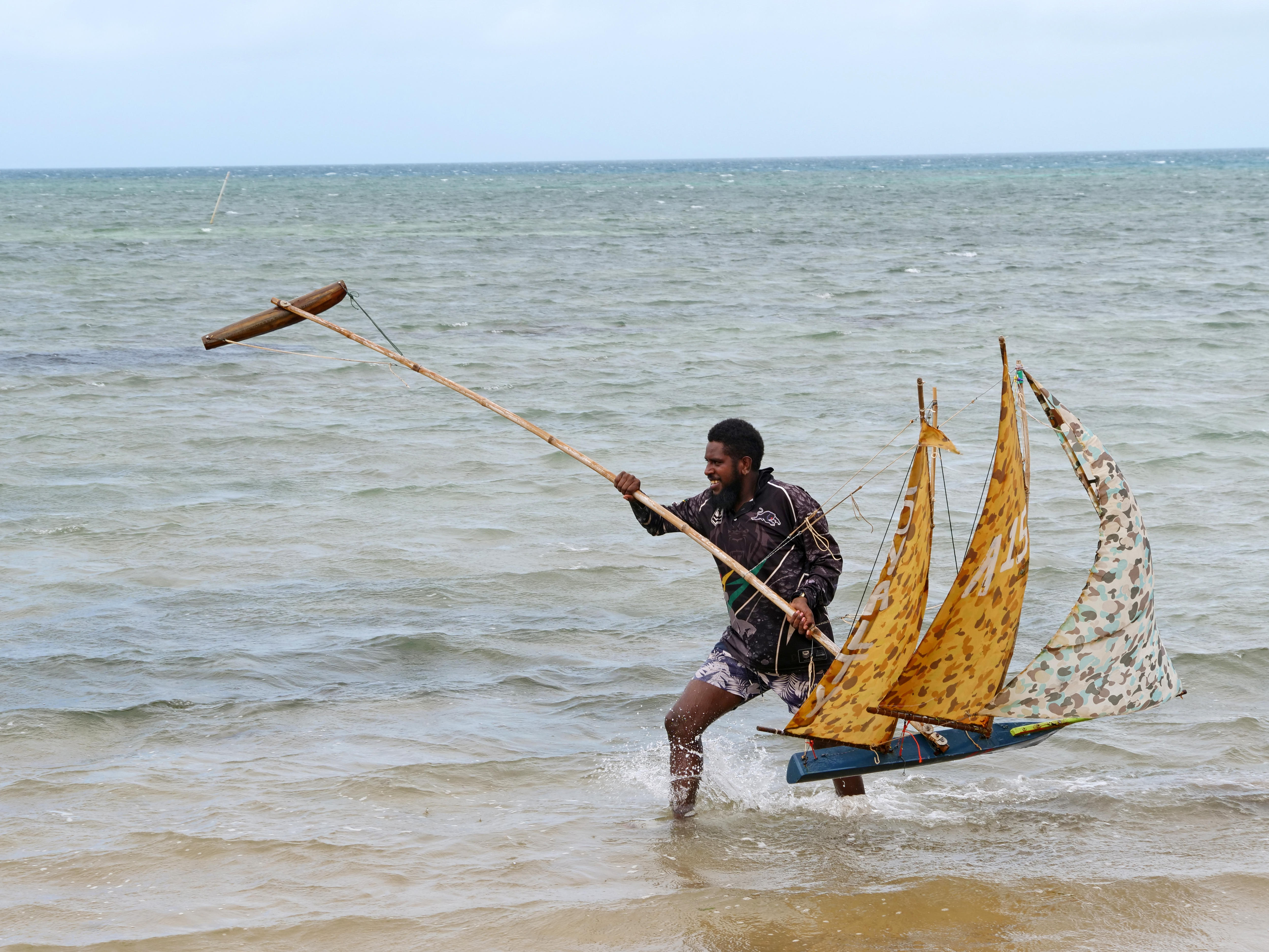 People gather along the Coral Sea at Dadamud to watch the highly anticipated model boat races.