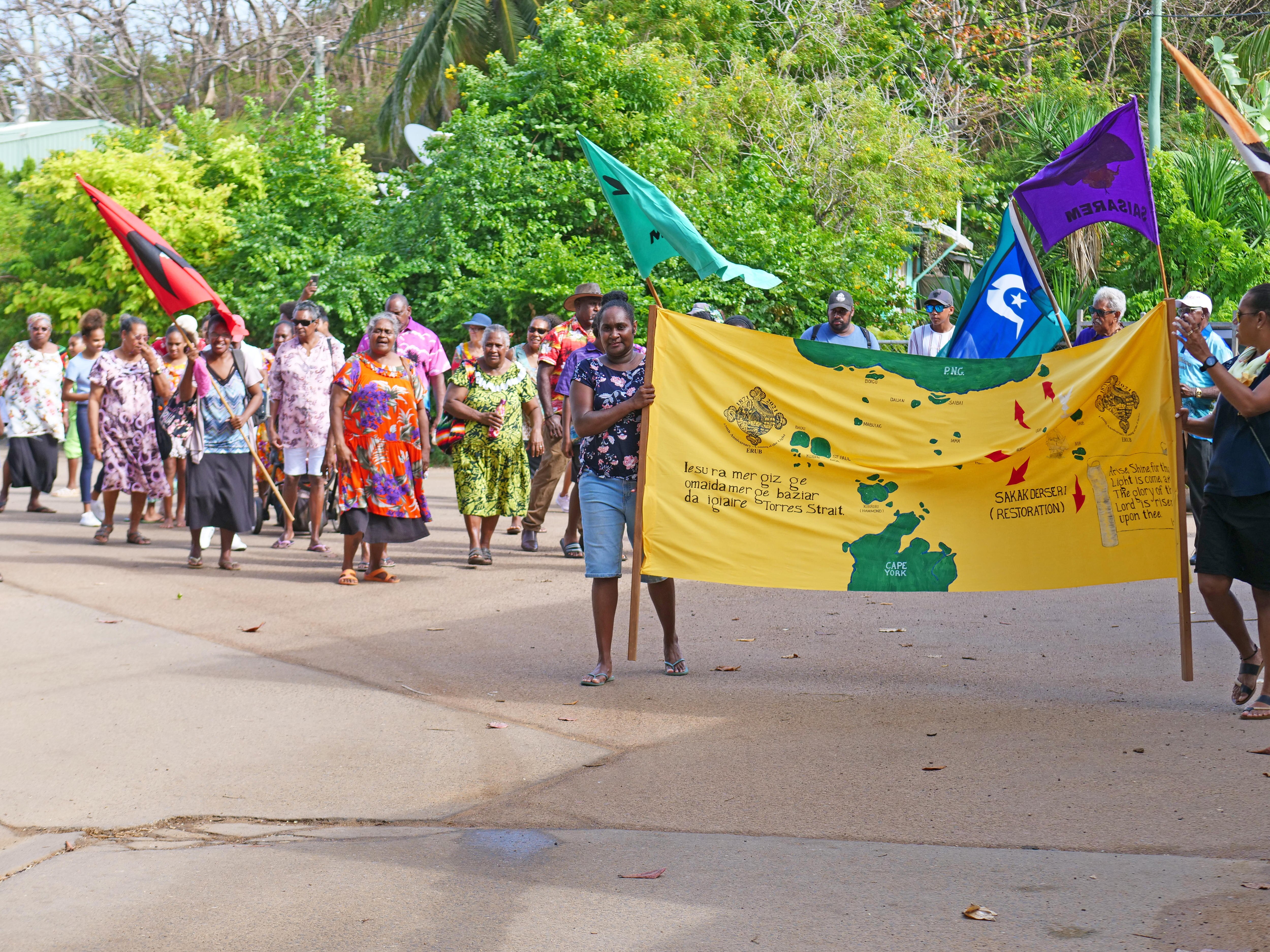 Torres Strait Island Regional Council Mayor Phillemon Mosby addresses the service and says the date is deeply woven into the identity of Torres Strait Islanders, signifying strength, resilience and unity.