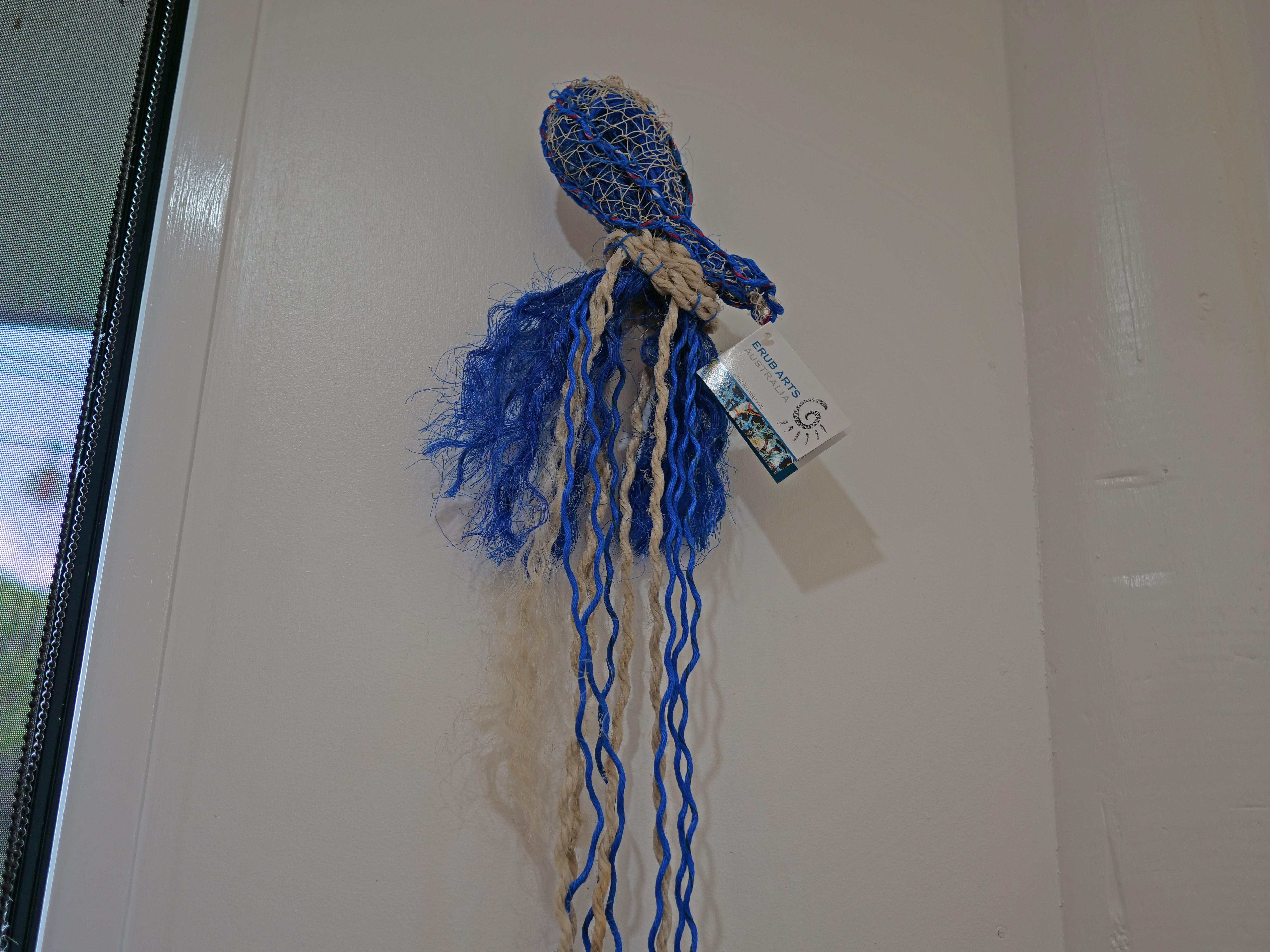 At the other end of the site is the Erub Arts ghost nets workshop. Ghost nets — sounds spooky, right? Well, they kind of are.