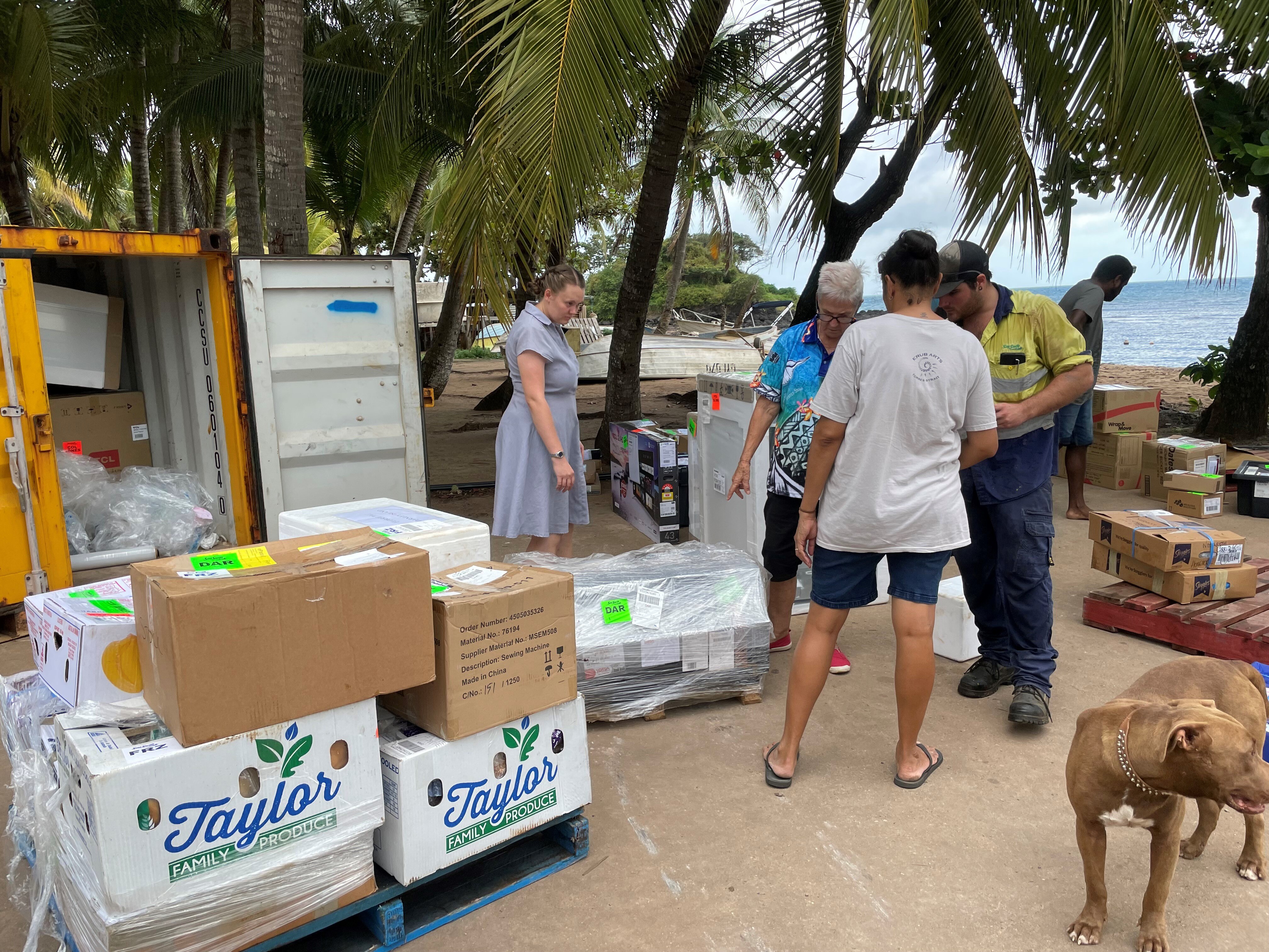 A late barge, like today, means it's a long and physical day for the IBIS team who have to close the store to deal with the new stock.
