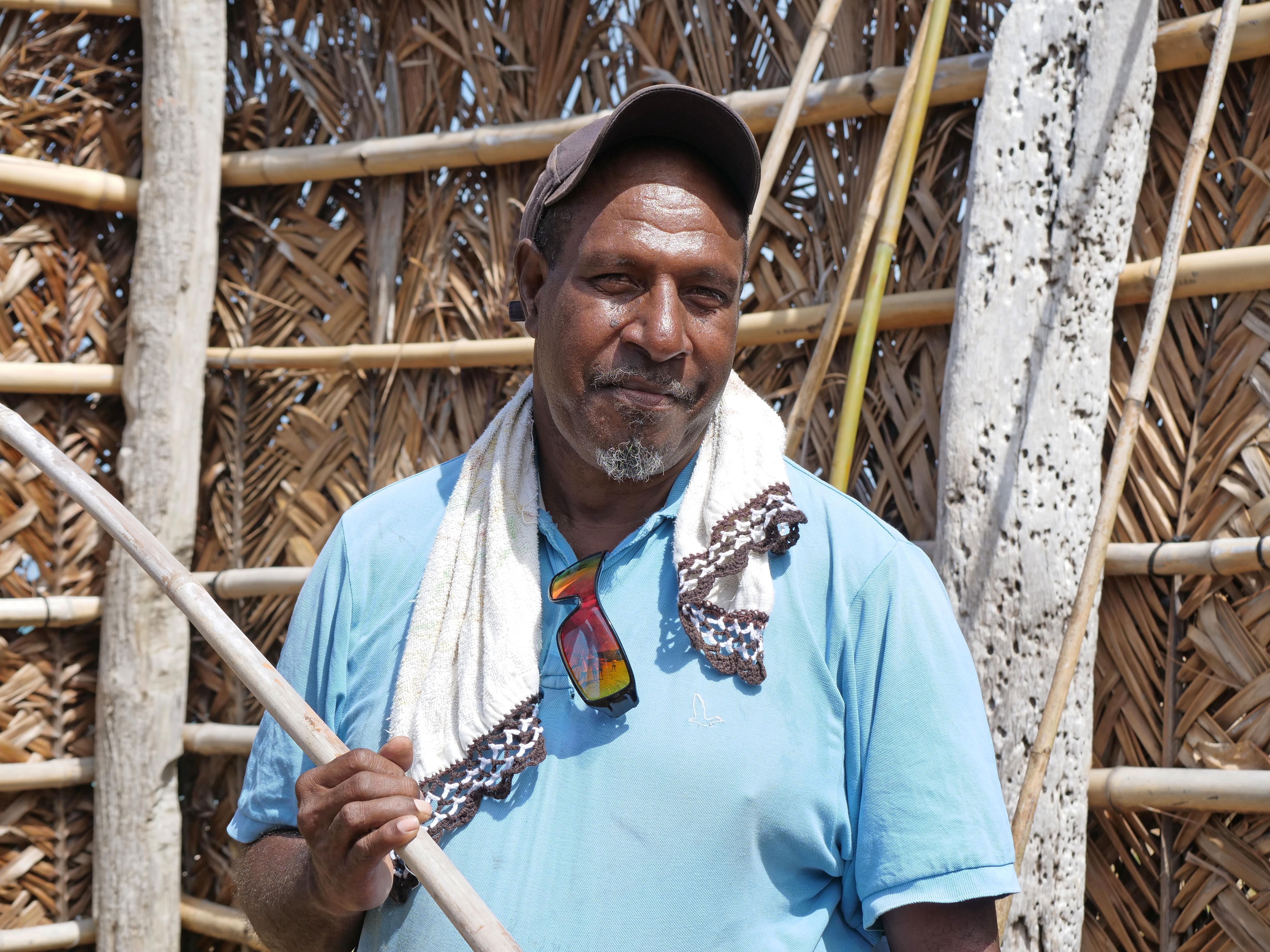 In the village of Badog, Nelson Damoy Thaiday holds a spear-making workshop.